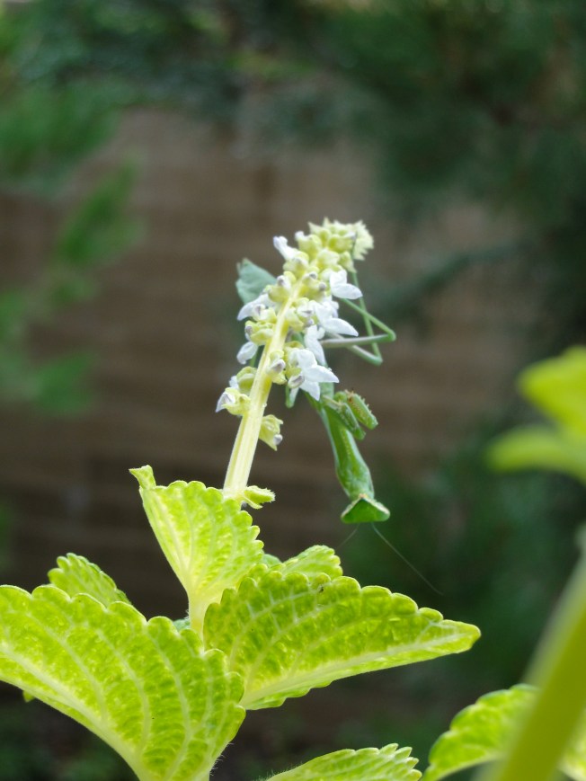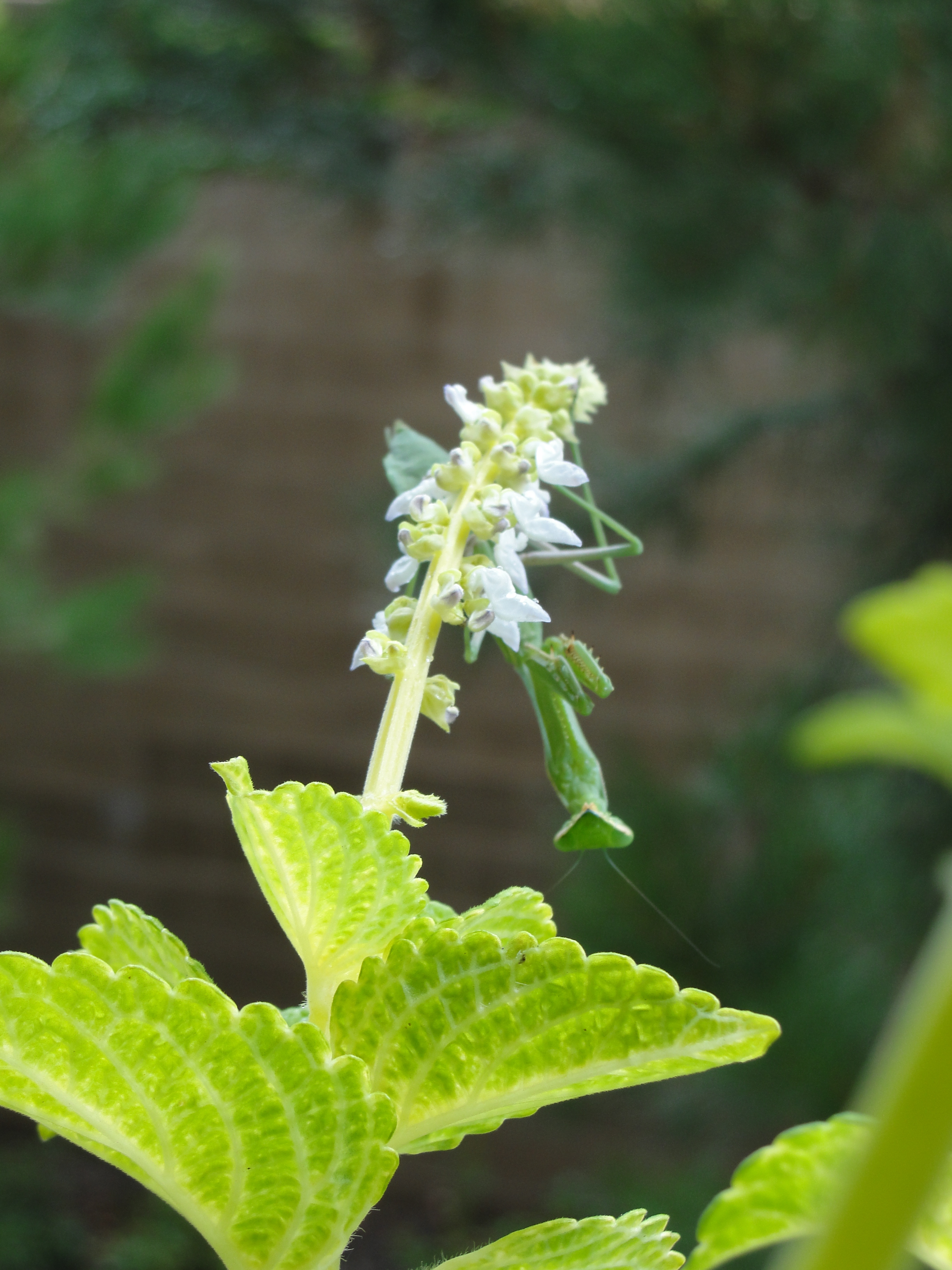 A couple months ago I had released a bunch of teeny tiny praying mantis‘ into my garden to help with an abundance of aphids. They stuck around for a few weeks, some disappearing into the wild of the apartment complex and others finding  a few more bugs in my garden to munch on. However, after about a month, I no longer saw any of them.