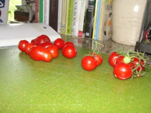 I used up the last tomatoes as well as the last mini yellow bell peppers from my garden and some tomatoes from my mom’s garden (thanks Mom!) and made for the first time, some Ripe Tomato Chutney from a great book that I received in the mail this past week – Well Preserved: Small Batch Preserving For The New Cook By Mary Anne Dragan. Since my tomato supply was so limited I ended up cutting the recipe down A LOT to make one cute little jar of chutney. But, it turned out pretty delicious and I am excited to try more preserving recipes in the future.