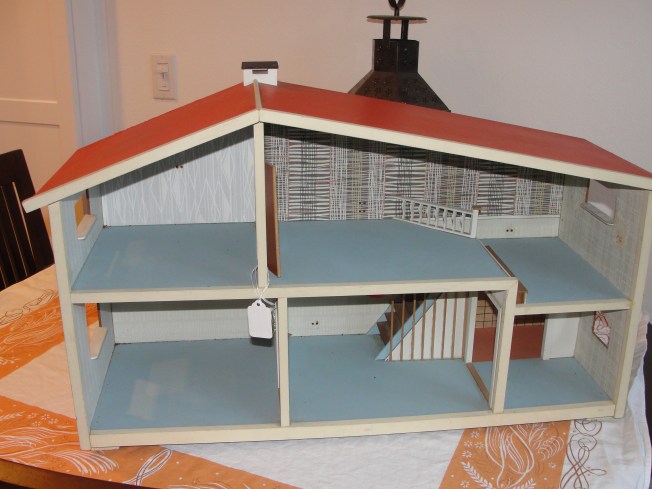 2. Please don’t think I’m a crazy person but the dollhouse you have is an amazing vintage Lundby from around 1969/1970. The wallpaper is in perfect condition and it is so rare to find those patterns. Please don’t change it. If you cover it, do it so that you can remove it. The house alone is worth about $100. It looks like the only thing missing is one window sill.