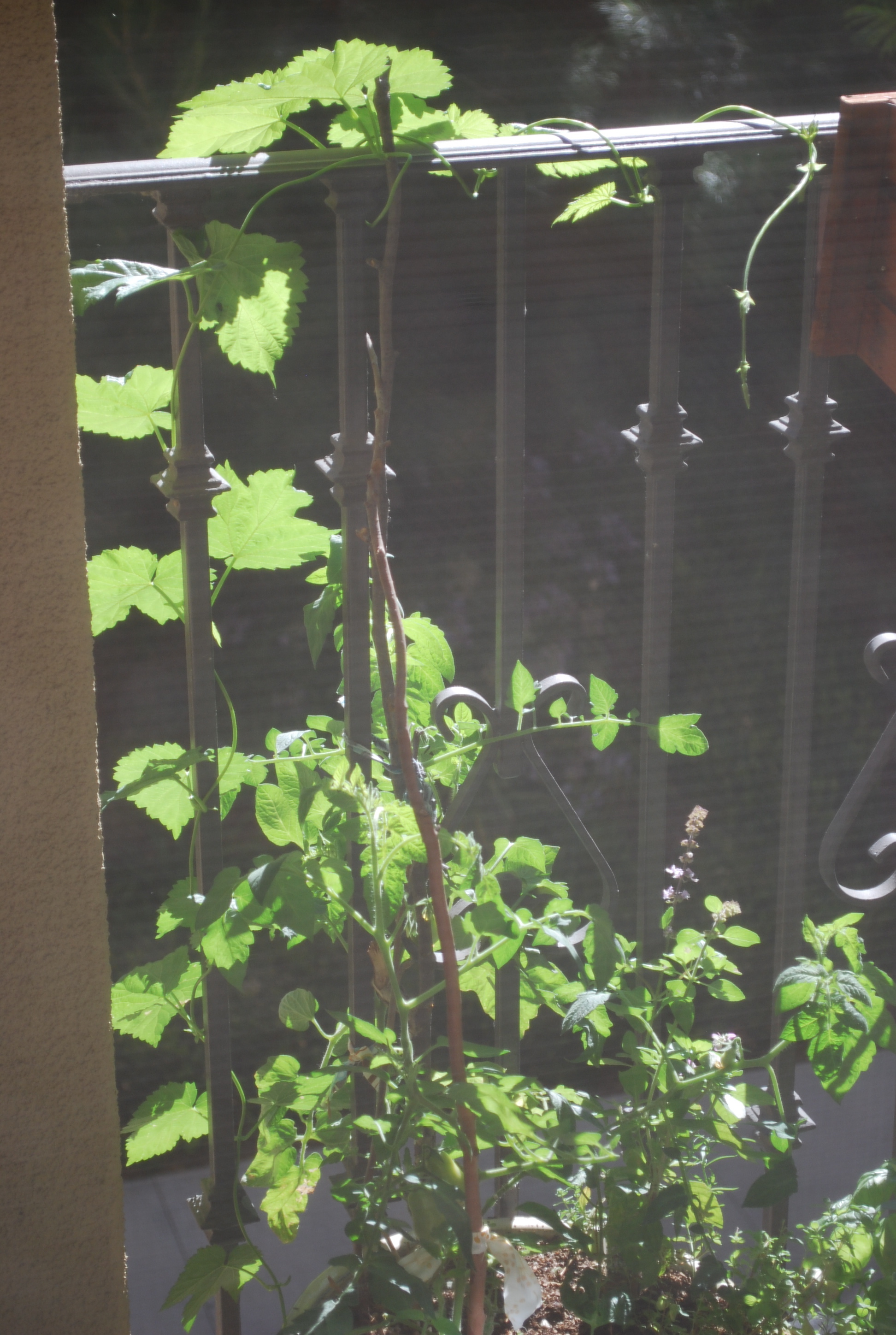 And I had to end with a picture of my husband’s pride and joy- the Hop plant. It is growing like a weed and we are hoping it slows down a bit so that we can keep it with us. They do get quite large, but it’s been fun to see it grow so quickly and twirl around things like a grape vine. My husband is eager to learn as much as he can about the plant and maybe one day we’ll be growing a lot more of them on a lot more land.