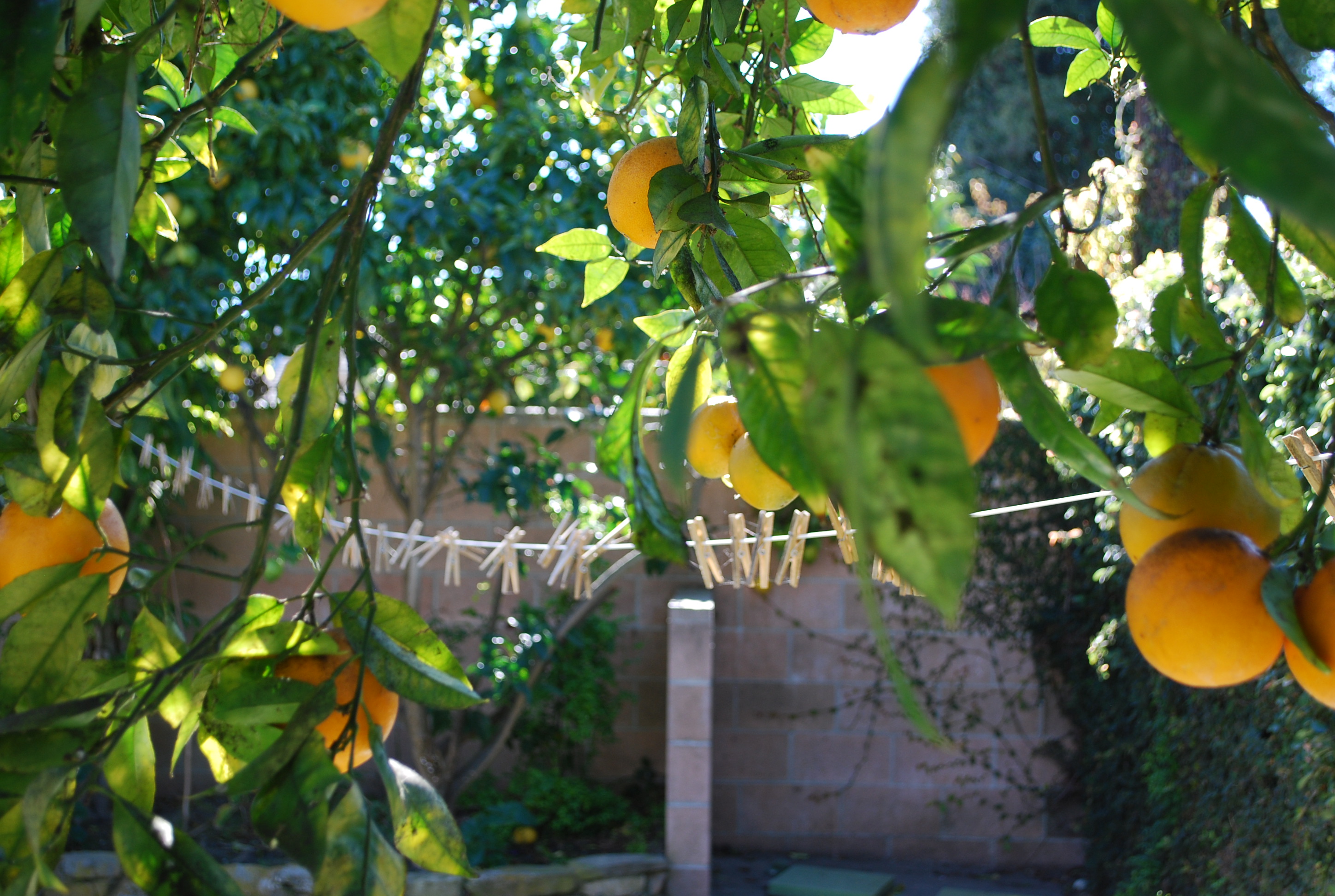 When we first saw this house and saw that it had an orange tree in the back yard, we was sold! I had always wanted to grow a fruit tree and here we had an orange and a lemon tree already growing and producing beautiful fruit! Of course we are renting, so these trees aren’t really ours, but we are doing our best to care for them, love them and eat from them often! This past weekend I noticed the branches were becoming very heavy with fruit and so armed with my fruit picker (Jeff bought one the day we moved in), I picked some fragrant armloads of oranges. We have a lot of fruit! Not only have we been eating them and cooking with them, but we are giving bags of them away to family and friends. For some reason, giving this fruit away tickles me so and leaves behind a warm feeling. I love the gift of homegrown food (okay, I didn’t really grow this tree, but I’m tending to it). I love that on our walks we see plenty other fruit trees in our neighbors yards. It’s good that we finally live in a place where growing one’s own food is accepted practice. And I think we’re just going to have to make friends with some of our fruit tree neighbors so that we can acquire some more produce- like those mandarins and avocados I’ve been eyeing from outside our window.