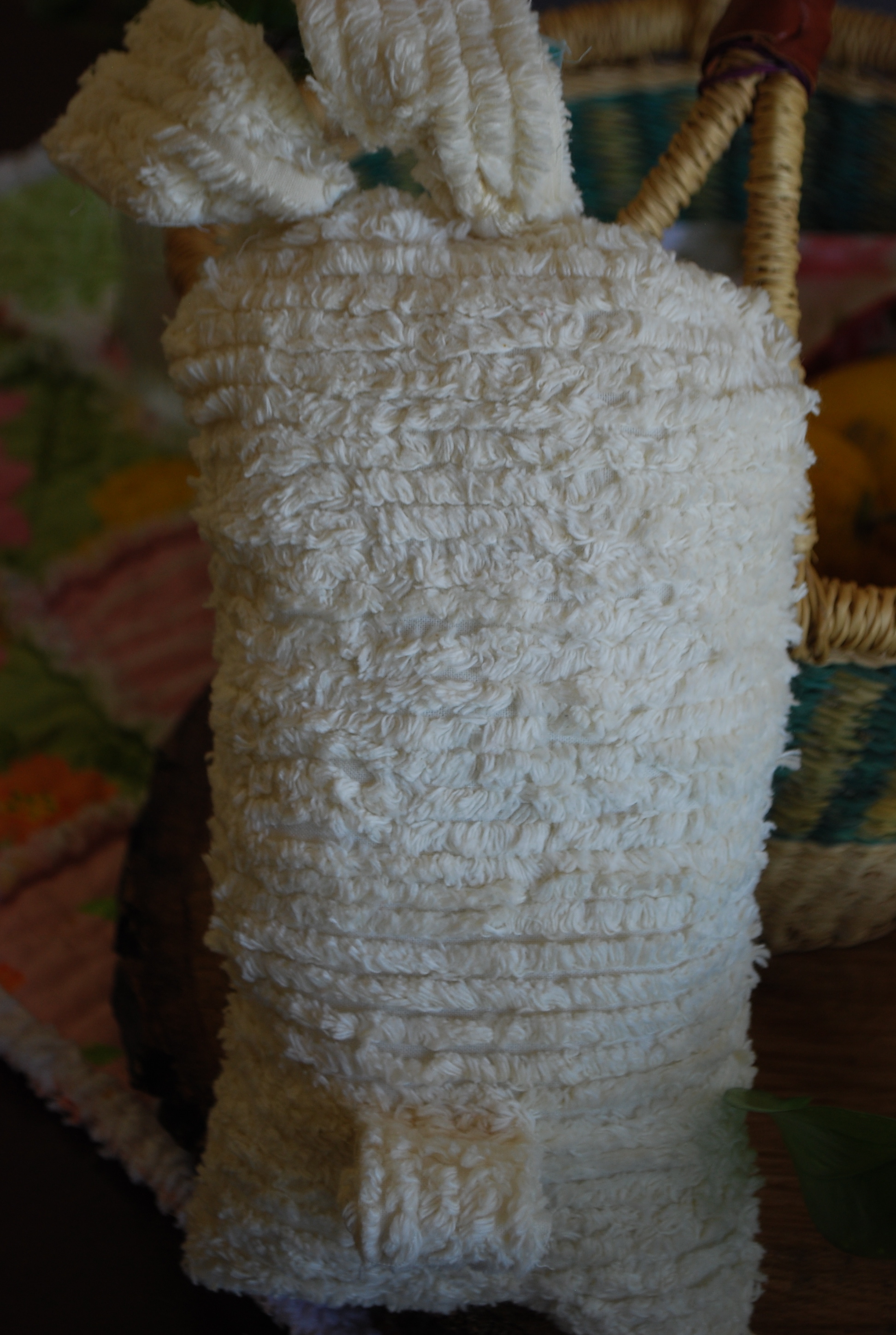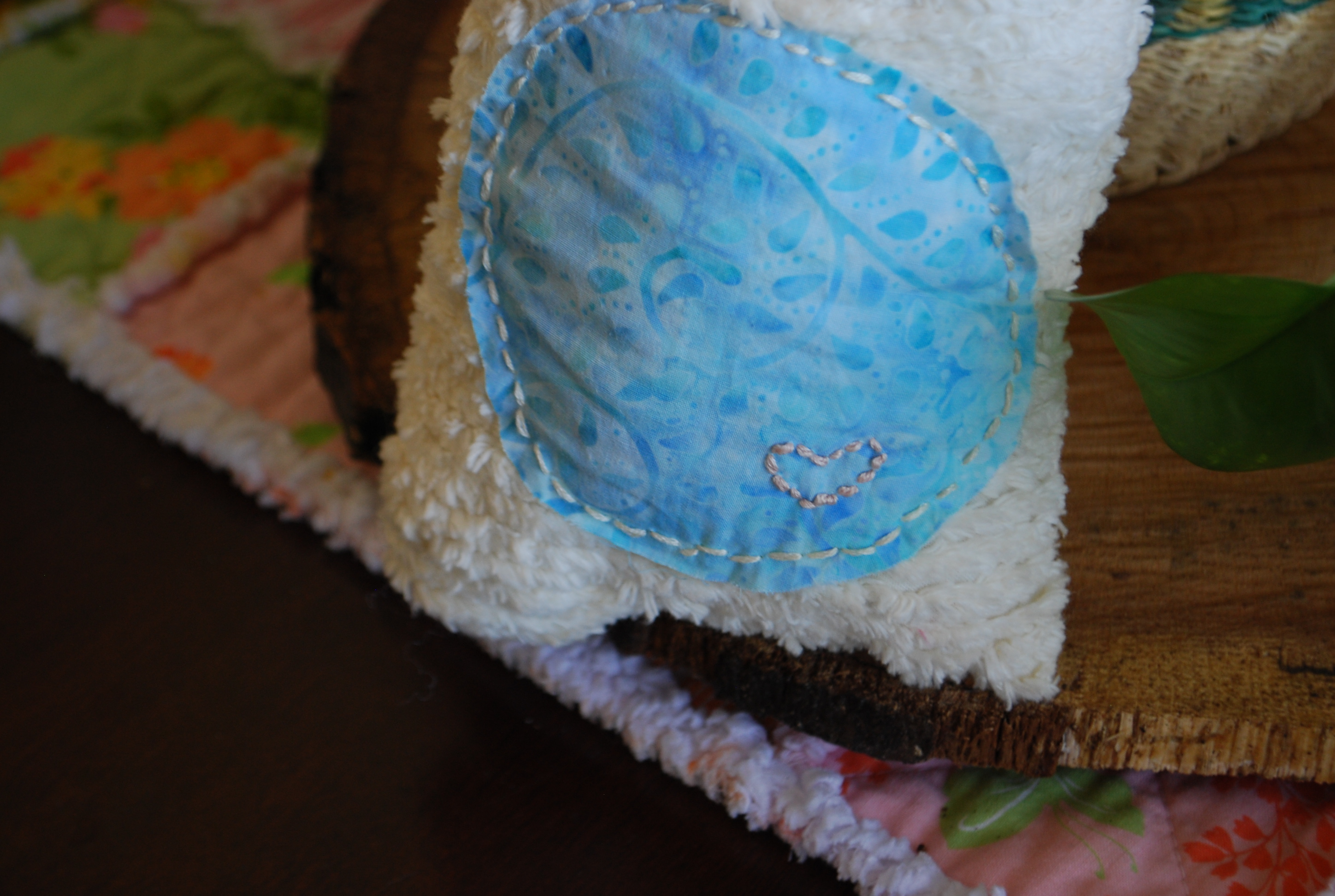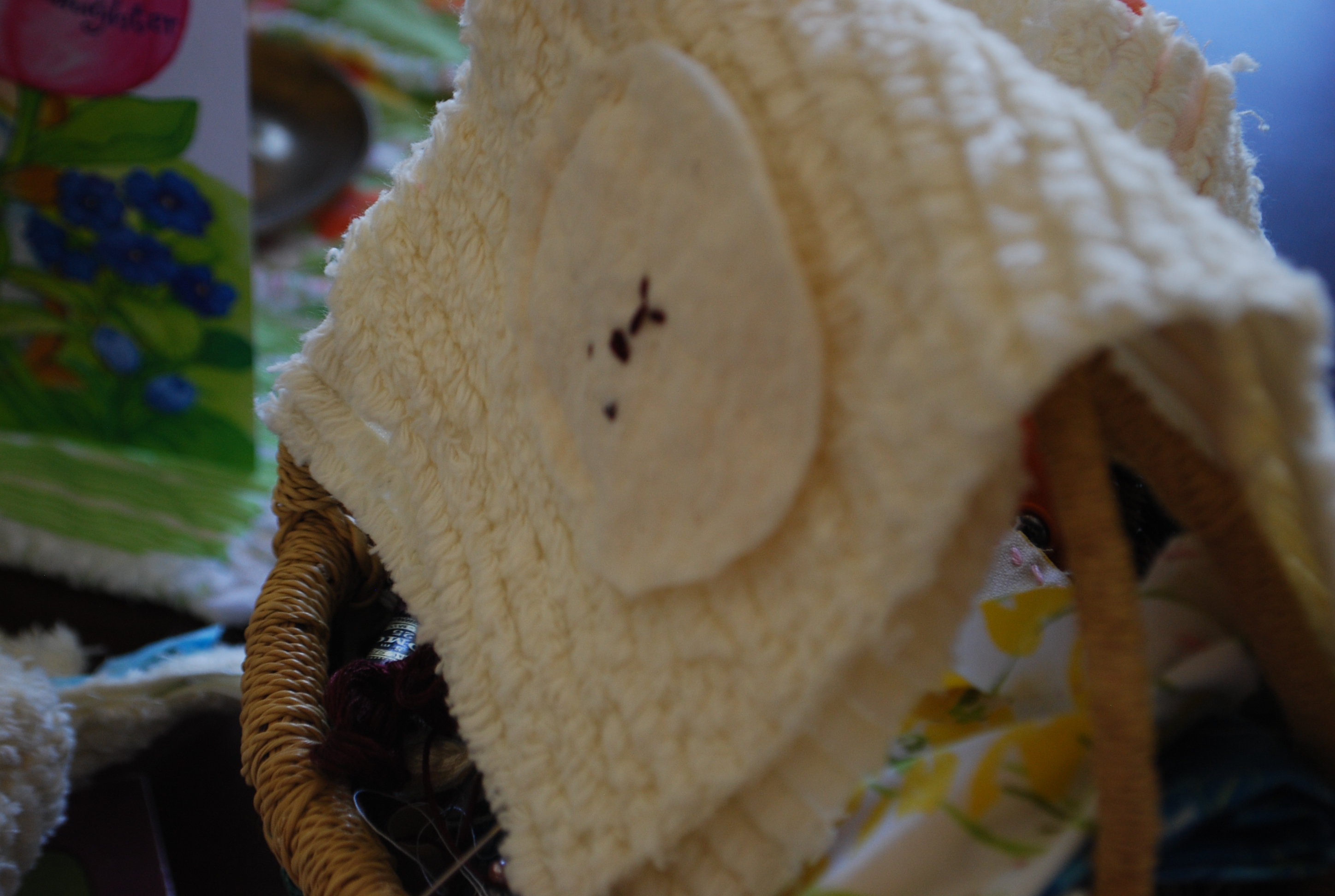 I can’t help myself. I know it’s not Easter yet but I just had to share what I made for Ellie. We didn’t quite budget enough for the bunny I had my eyes on for Ellie’s first Easter basket (we realized Easter landed in March this year a little too late). I started pouting and throwing an “I hate budgets” tantrum when I came across another bunny I adored on Etsy. This time though, I thought I could probably make it myself. So I found some leftover chenille from Jeff’s quilt and some spring-timeish fabric and whipped up Ellie’s very own completely hand sewn Easter bunny. Another product of those long nursing sessions and napping in my arms that’s been happening lately. I was so impressed with myself I forgot all about wanting to buy her a bunny. I’m itchin’ to make more- so I’ve already started a new little softie with the rest of the chenille… who knows, maybe I’ll be selling on Etsy someday soon.