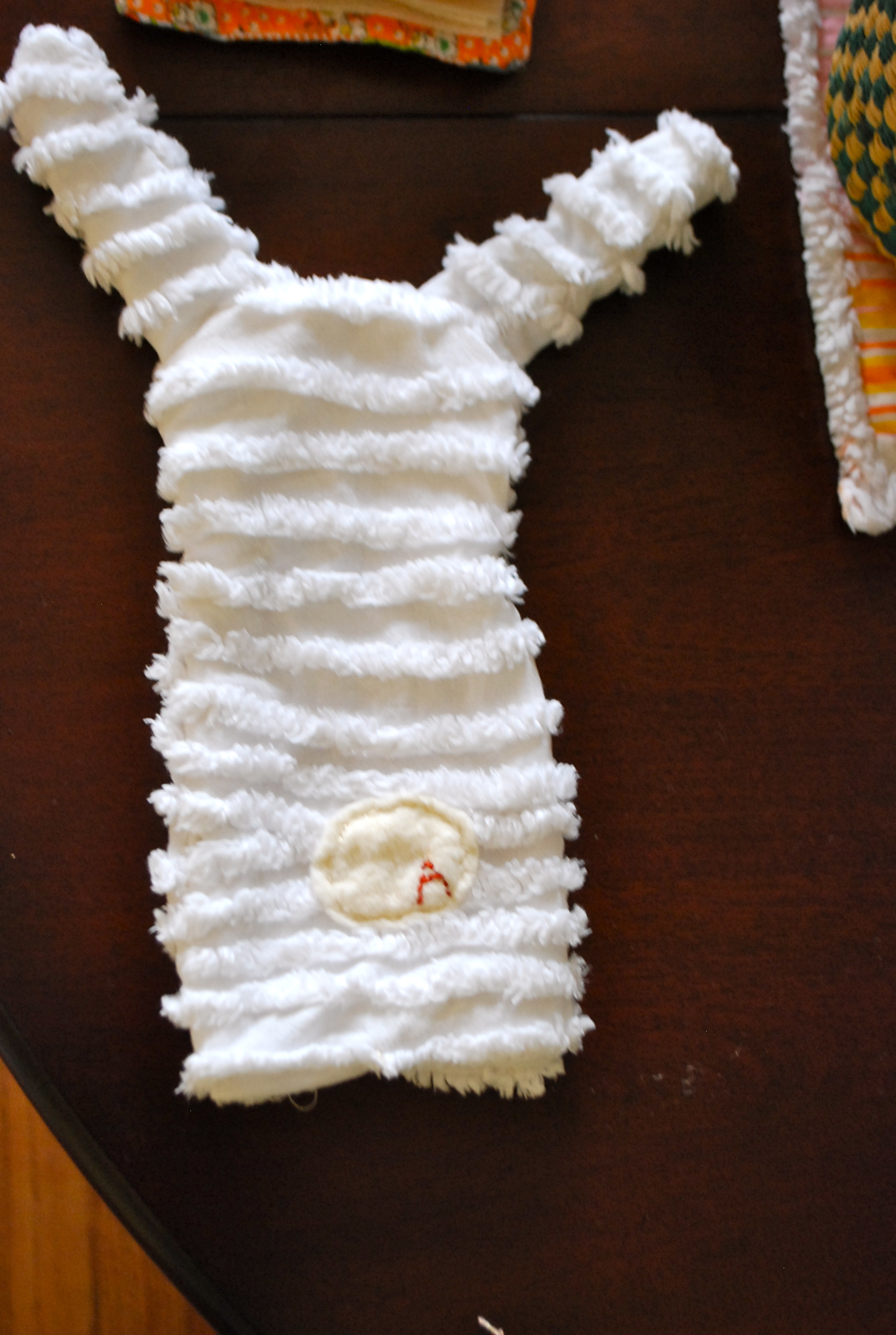 The dreary weather this weekend seemed to bring the mood down a bit. We all found ourselves a bit tired and grumpy but we managed to have some fun times too. We brought back out the jackets and warm hats and did our weekly farmers market run, warm coffee’s and chai tea’s in hand this time. We did a bit of yard sailing where I found the most magnificent chair (more on that find later this week)! There were naps in Daddy’s arms and lots of reading books (Ellie’s new favorite past time). In between lots of indoor play, I got in some cleaning and some sewing. I finally finished the new Ergo chew pads only to realize I had made the stripes going two different ways, cest la vie. And I finished a little softie for our friend’s new bundle of joy that arrived last week. We are hoping to visit and meet little Miss Avery soon (the picture is just the bunnie butt, I’ll post the rest when we meet baby Avery). We ended the weekend with a warm homemade dinner of bangers and mash. The farmers market spring peas I shucked myself which was quite fun. How was your weekend?