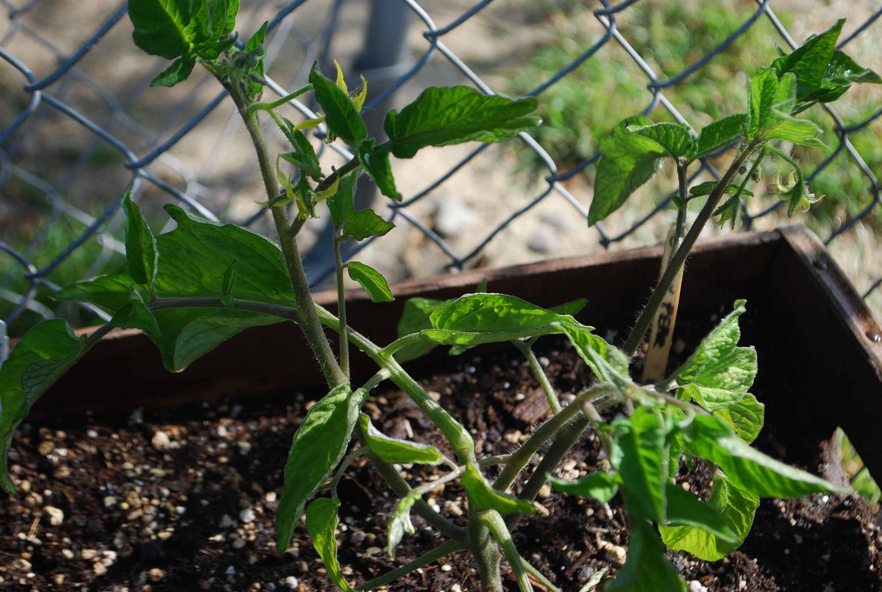 This is another farmers market seedling that seems to be growing nicely in this box. It’s a black pear tomato and already has a little flower. Looking forward to homegrown tomatoes for lunch.