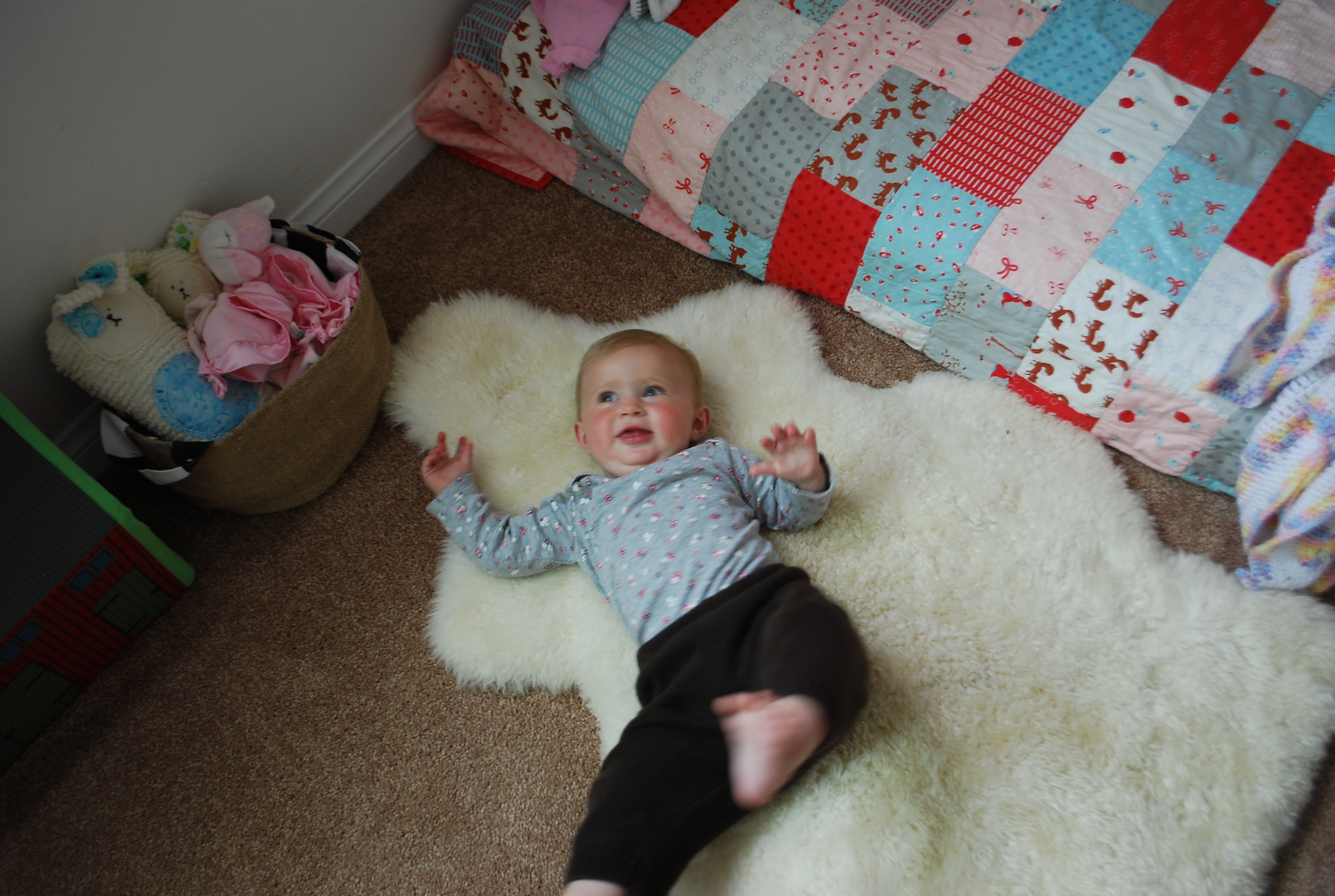 eloise: your mama has been very busy making you your very own room. You have always been near us, sleeping with us, in a carrier close to our hearts… but now you are crawling and pulling yourself to a standing position all over the house and all of a sudden, you are getting farther away from us then ever before, exploring the world around you. So now I’m wanting to create a safe space just for you. Somewhere you can play and crawl and climb and relax. A special place all about you. We’re still working on it but you seemed pretty happy with what we have done so far!Β