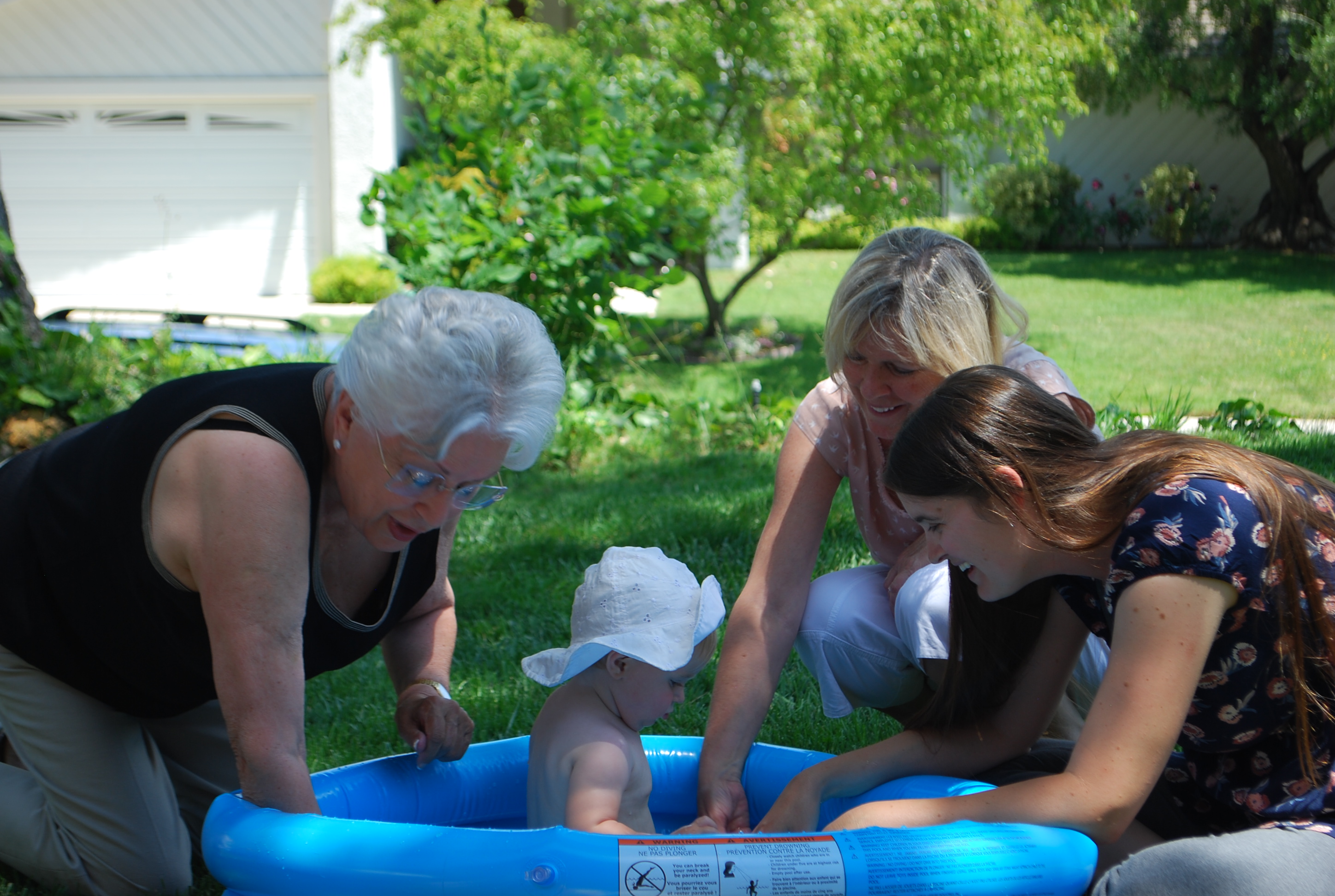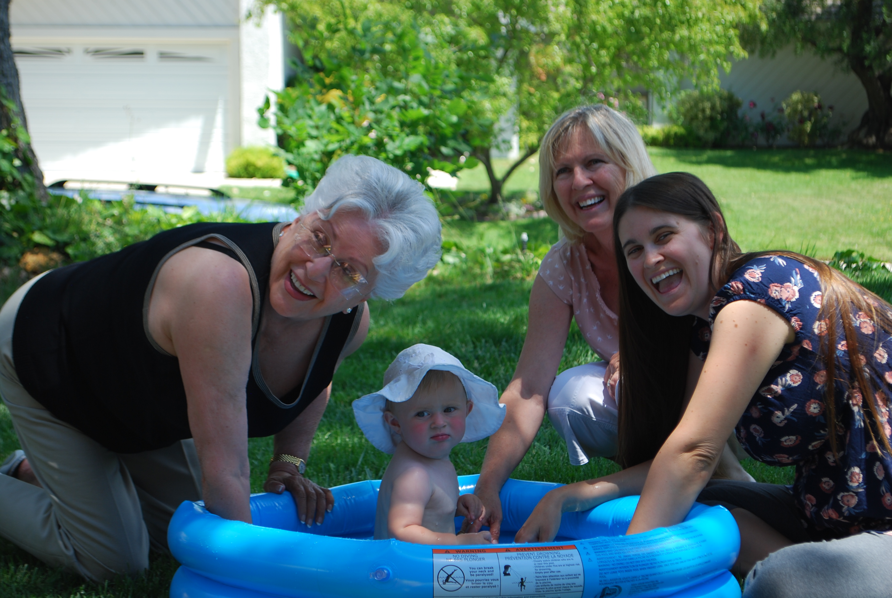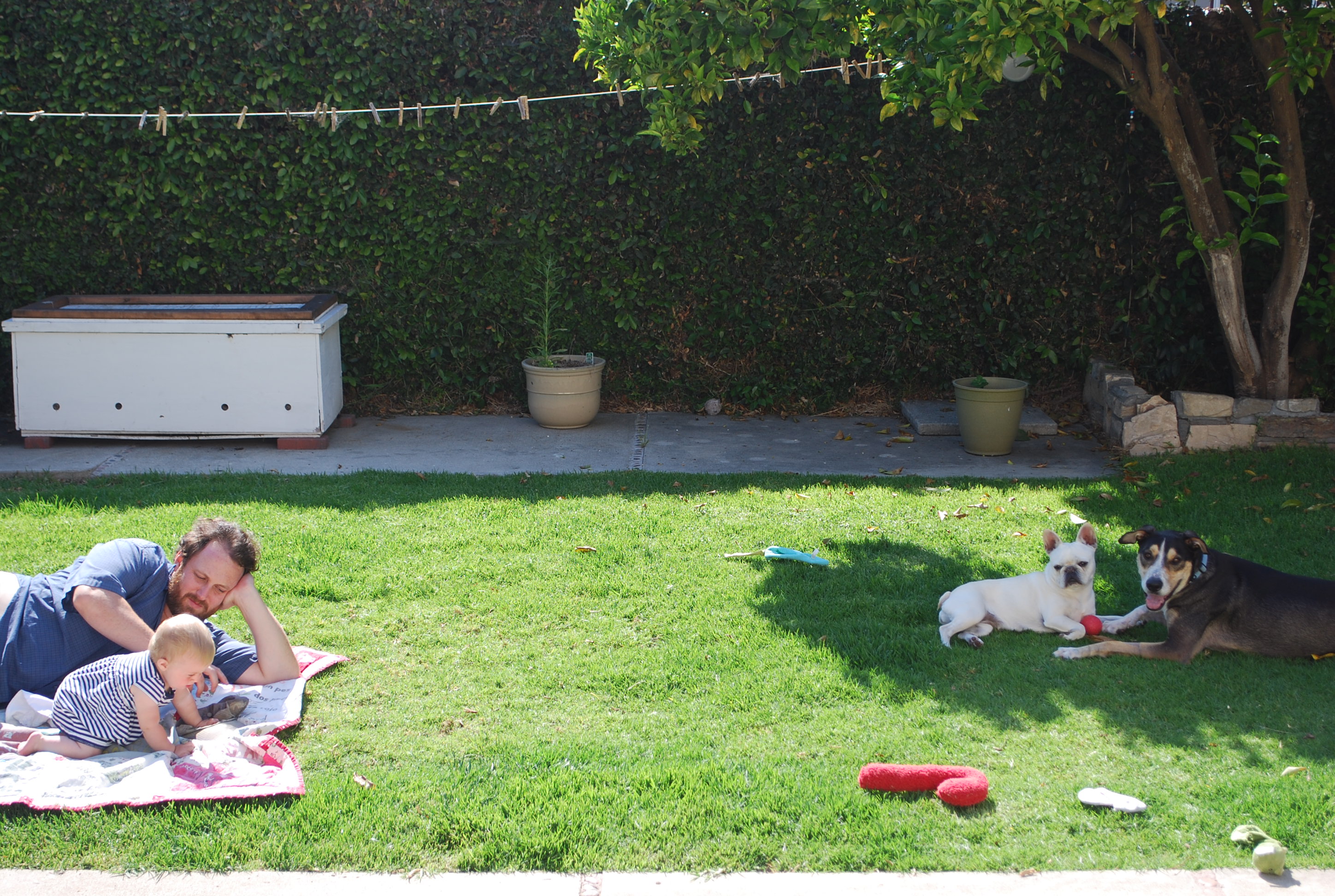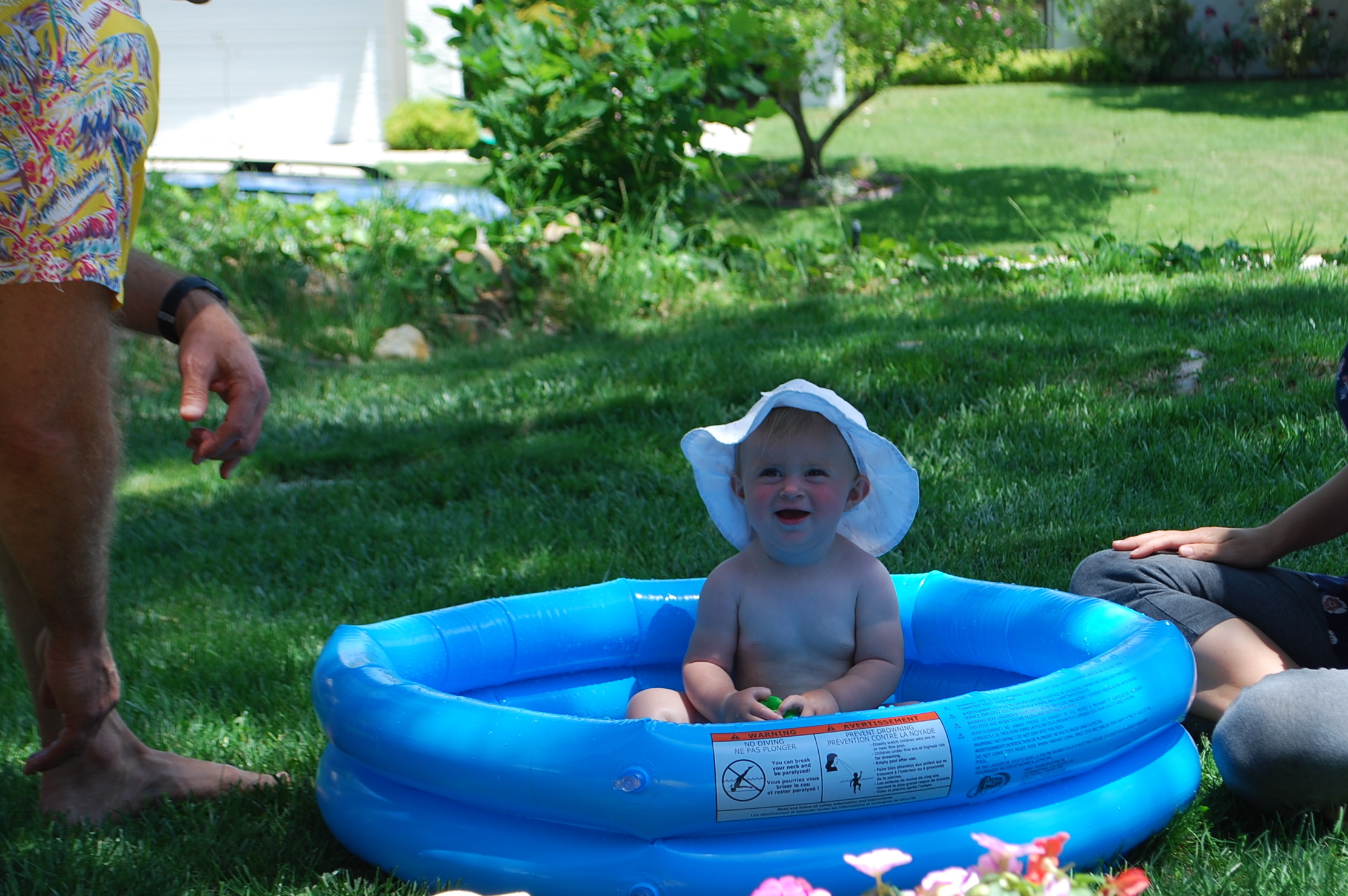 After a long and pretty tough week, I was looking forward to a nice Mothers’ Day weekend. My little girl is still teething and needing lots of extra love and attention these days. She’s also quite the mover and the shaker and this Mama here is pretty tired from chasing her around and trying to keep her little noggin’ from bumping into too many things. Ā We also had quite the scare this week when our shepherd had a run in with what we think to be a feral cat who was brave enough to climb over into our yard. The cat seemed Ā okay as he took off after Jeff split the two apart, but our shepherd was left with scratches across his face and paws as well as a fractured tooth which had to be removed the next day. I love my animals but I don’t always like them acting like animals. After spending a day with the vet, we brought a very loopy dog home. He’s fine now and lets hope the cats stay out of our yard! While Linus was at the vet, we took Charlotte to the beach to start our weekend. We let this dog run a long the dog beach side and she loved it! It had been awhile since she had been to the beach and it was fun watching her frolic in the sand. We visited the farmers market and were excited to pick up some stone fruits already! Yum! We also enjoyed seeing friends and their babies at a house warming party and finally we spent sunday with my family including my Grandmother (Ellie’s Great Grandmother). It was a VERY hot day. Perfect for a first dip in a kiddie pool that Ellie’s Aunties picked up for her. It was nice to spend time with my family. I’m so very lucky that I have such a close relationship with them. My first Mothers Day with Ellie (outside of my tummy). It’s so neat to be able to spend Mothers Day with Ellie, my mom and my grandmother. I had gone through old picturesĀ of when I was a baby,Ā last night, and came across a few of my mom and grandma in a kiddie pool with me as a baby. It’s kind of magical when life replays itself with a new generation. I guess I’m finding being a mother both tough as all heck but extremely magical Ā and amazing the next minute. My baby girl has quite the personality already. She can be stubborn and strong-willed ( Dad says, “like her mother…” I say ” ahem… like her father.”), but at the end of the day… at the end of this long week and at the end of this lovely Mothers Day… I sat in the rocking chair, my stubborn, sweet baby cradled in my arms. Her blond hair smelling sweet and clean from the evening bath. I sat there rocking my girl to sleep and felt so very blessed and lucky to be her mother. I couldn’t help but get teary holding her and loving her so very much. This quote I came across onĀ Jodi’s blogĀ resonates with me so very much. I had to take it for my own and use it here today…