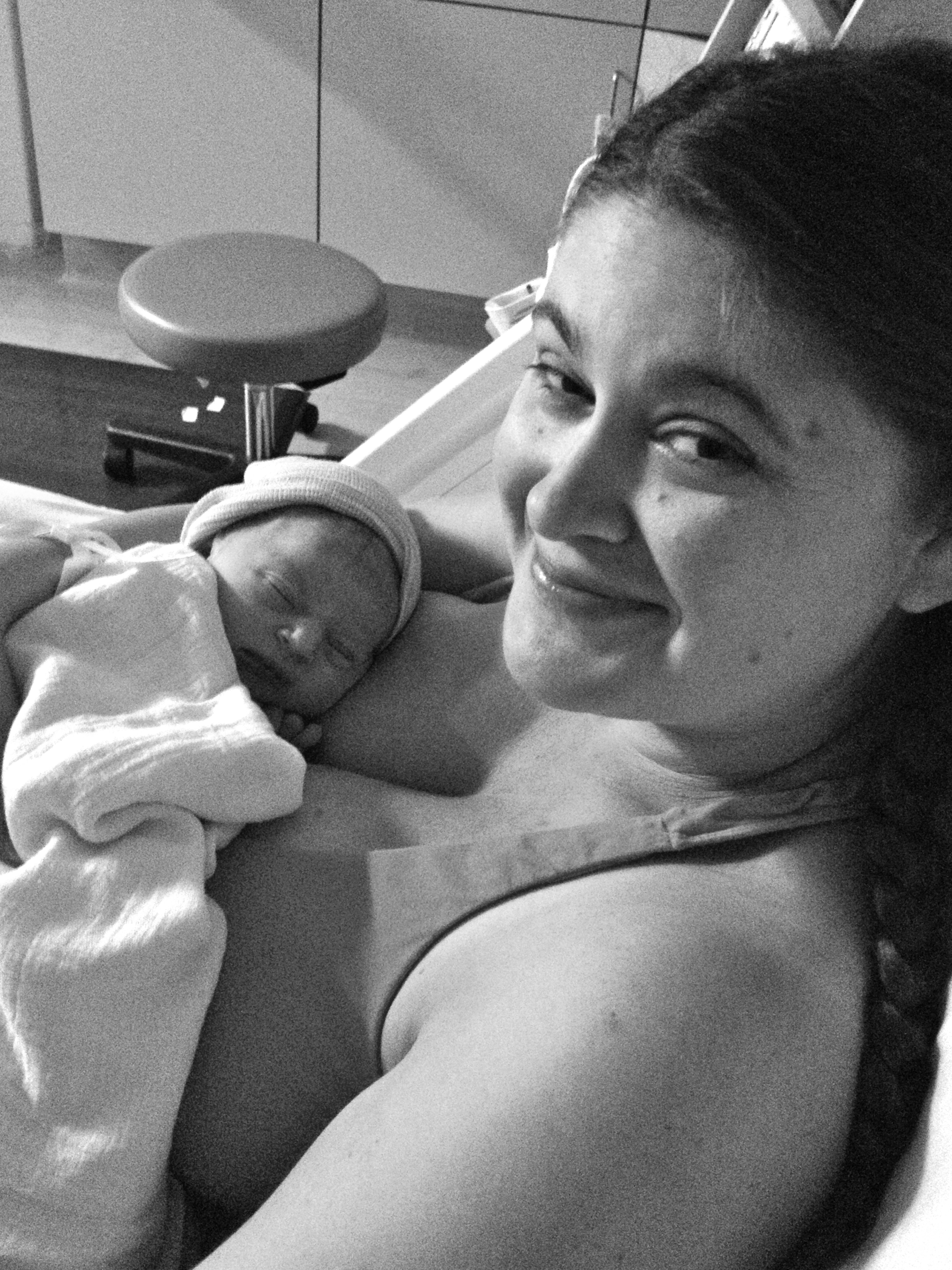 The birth is blurry in my head. I think that’s why I never told Ellie’s birth story here. I remember tiny bits and pieces; needing Jeff to be a constant all 20 + hours, feeling the warm water of the hospital shower rain down on my belly and back, easing some of the pain and being conscious of whether or not that damn IV stuck in my hand was getting wet. I remember leaning on a ball, the same ball a new Daddy would bounce his infant to sleep on. I was moving a lot. Up on the bed, squatting on the toilet, resting in the shower and back to the ball again. I don’t remember the pain, although the photos our doula took suggests there was plenty of pain to go around. I do remember the surge of power I got when the midwife exclaimed I had reached 10 centimeters. The women in the room wanted me to push two times, each time, but I had insisted on pushing three times. I wanted that baby out. I remember lots of people in the hospital room at the end. A male nurse propped up against the wall with equipment. They thought Ellie may have swallowed merconium and as a precaution, specialized help was there at the ready. When she finally came out it was instant relief for my body and a flurry of activity. When she was checked over quickly and given the okay, her brand new, little body was placed on my chest. My body swollen from hours of the hardest work I had ever conquered and a steady stream of IV fluid was already doing what it was made to do, warm up that little creature lying there. I can picture the sweaty curls on Jeff’s forehead as he looked into my eyes as not just my husband but a father. I do remember that. My husband had in seconds changed before my very eyes into a father. Ellie was born on her due date at 9:59pm. And what I clearly remember is after the excitement died down, after I was stitched up, after the doula said her goodbyes and my own Mother got to meet her first daughter’s first daughter; it was dark and warm in that hospital room. Jeff had passed out for the night on the couch next to the bed. My Mom with tears in her eyes gave me a kiss on the head and one for her granddaughter too before leaving for the evening. After all was said and done, I laid there with Eloise, breathing ever so quietly and spent that first night holding her in my arms and memorizing her face, her breath, her smell. I was exhausted and the happiest I had ever felt in my life. I fell asleep with my new little baby safely sleeping on my chest. The nurses would leave us alone until morning. What a magical night that was in the hospital, this new little life I had created and pushed out, sleeping on my chest…