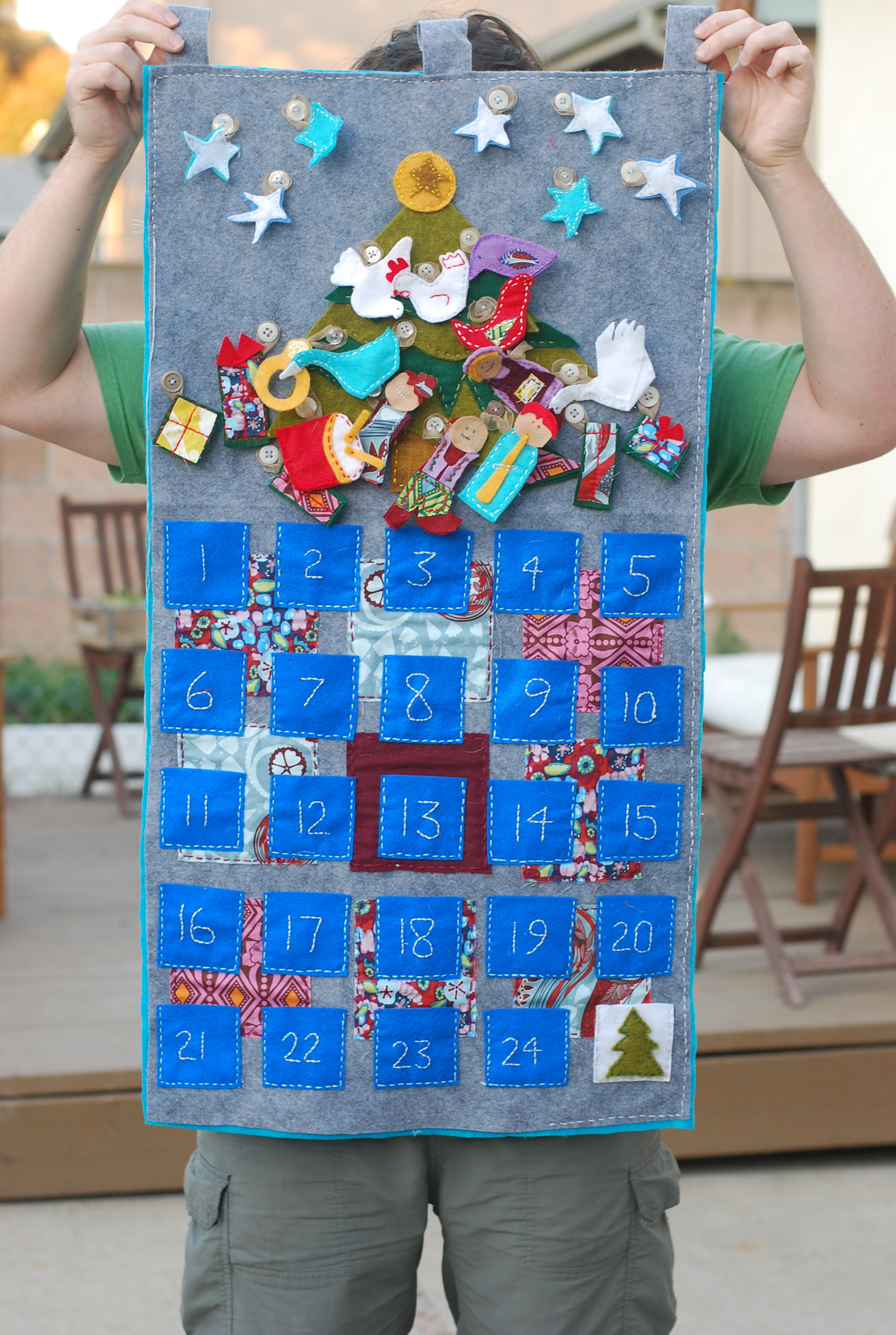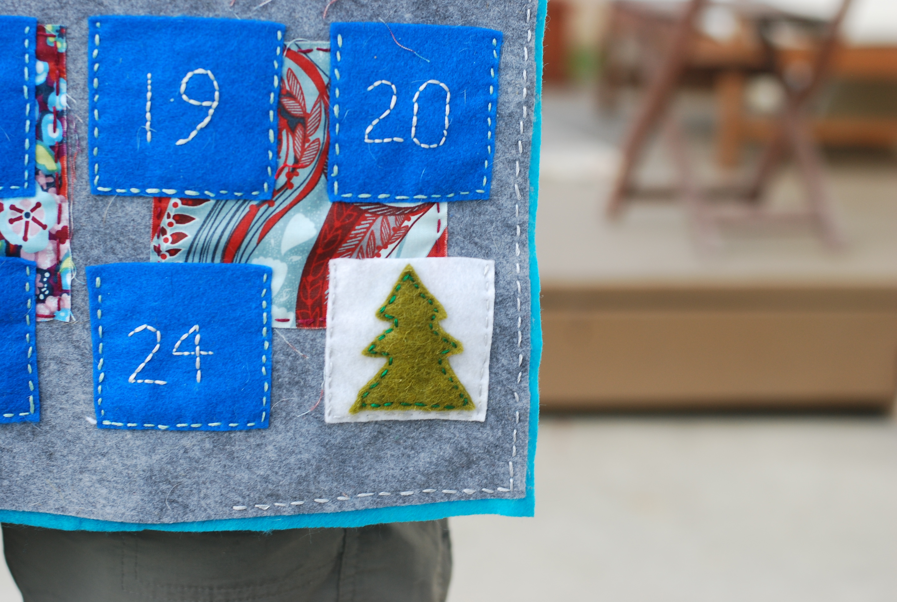 So, I started in with this advent calendar a whole month ago. I sewed and I sewed, any time Ellie napped, any time we were in the car, any time I could find, I sewed. But as much as I tried, I could not get this thing finished. I wanted to have it done the first week of December. I don’t know what I was thinking. There was no way sewing an advent calendar all by free form and by hand was going to get done in less than a week. So, it became my December project. A treasure we would hopefully have for many Christmas’ to come. Just not this Christmas. On Christmas Eve, I put in the final threads. It was finally done, the night before Christmas. Although we didn’t get to use it for it’s intended purposes this year, this project will truly be remembered for years to come. It was fun, it was tiring, my husband is thrilled the felt pieces are no longer all over our house and I’m really proud I finished it.