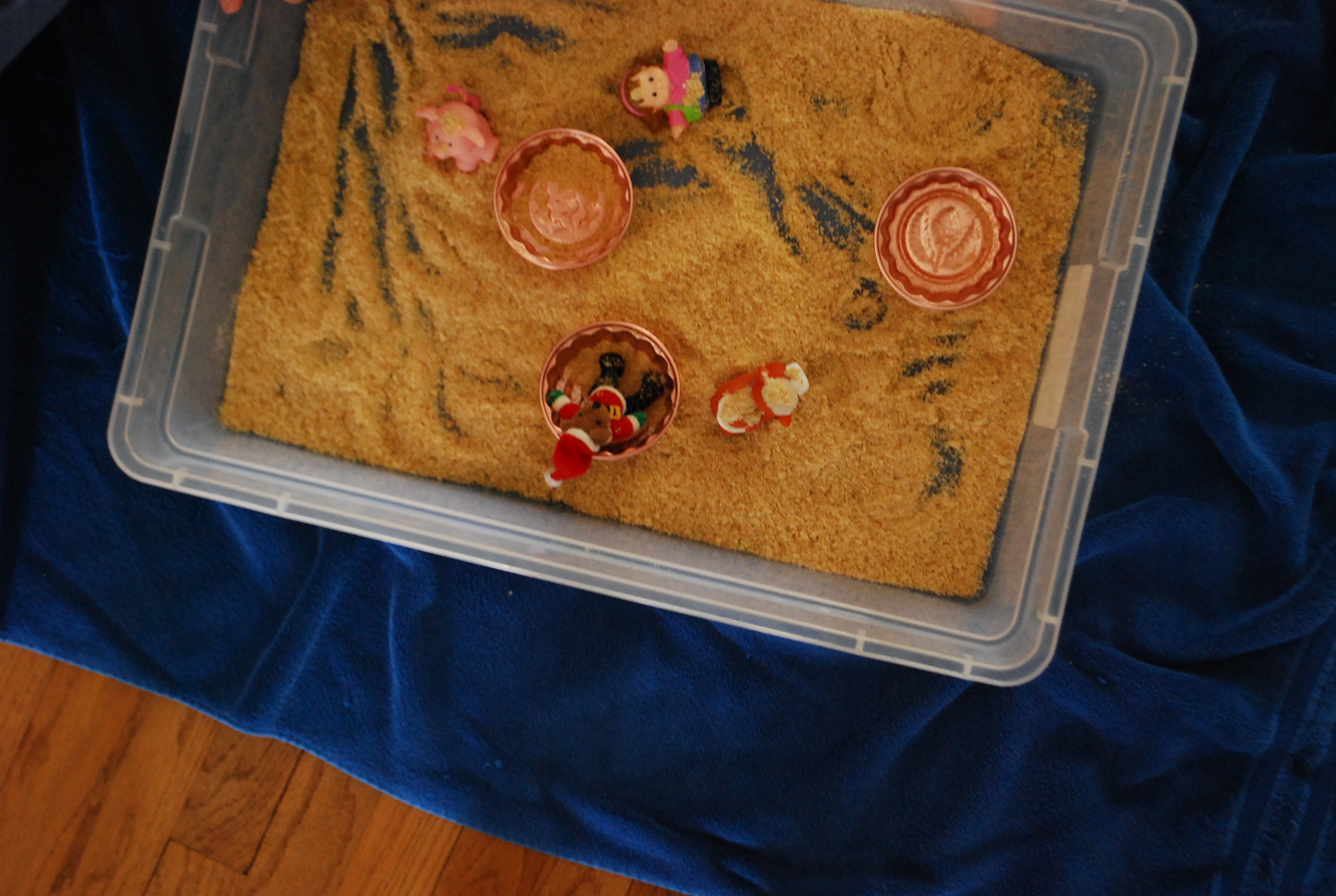 I threw in some random containers and some Little People to manipulate.