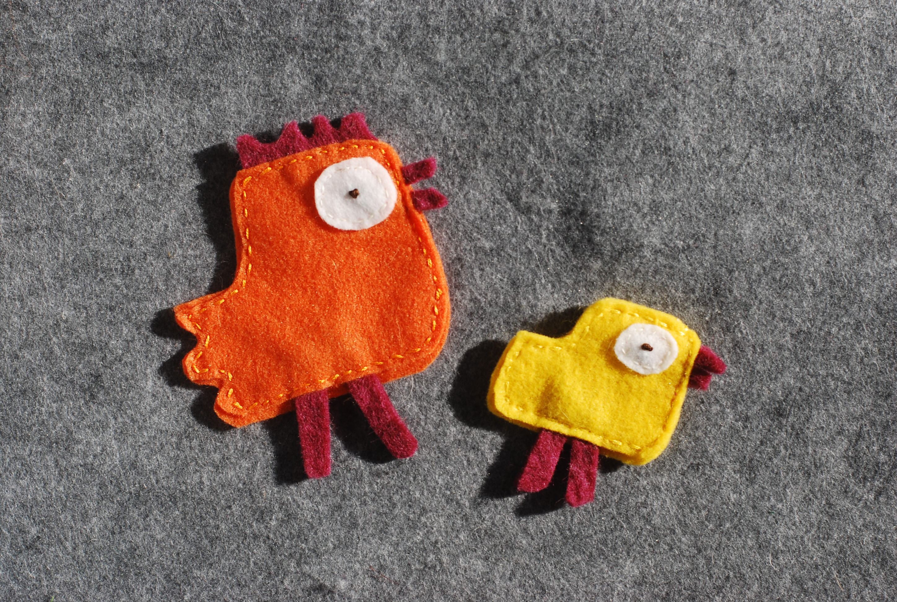 I realized the other day when Ellie brought me a felt Christmas tree off her felt board that it was time to make some new felt characters. I wasn’t sure what I wanted to make for the New Year until she continually brought Jeff and I the book Mommy! Mommy! by Taro Gomi, to read to her. I thought it would be so much fun to make her, her very own “Mommy” and “chickies” to play out the story on her board. So this week I went to work and last night I finished the “Mommy” and one of the “chickies”. They were super easy to make and turned out completely adorable. Ellie has been putting them on the felt board and taking them off all day. I’m still working on the grumpy dog critter and would like to make the barn, the sun and some rocks for the “Mommy” to hide behind. If you don’t have this board book, you have to check it out. It’s quite adorable. And obviously a favorite around here.