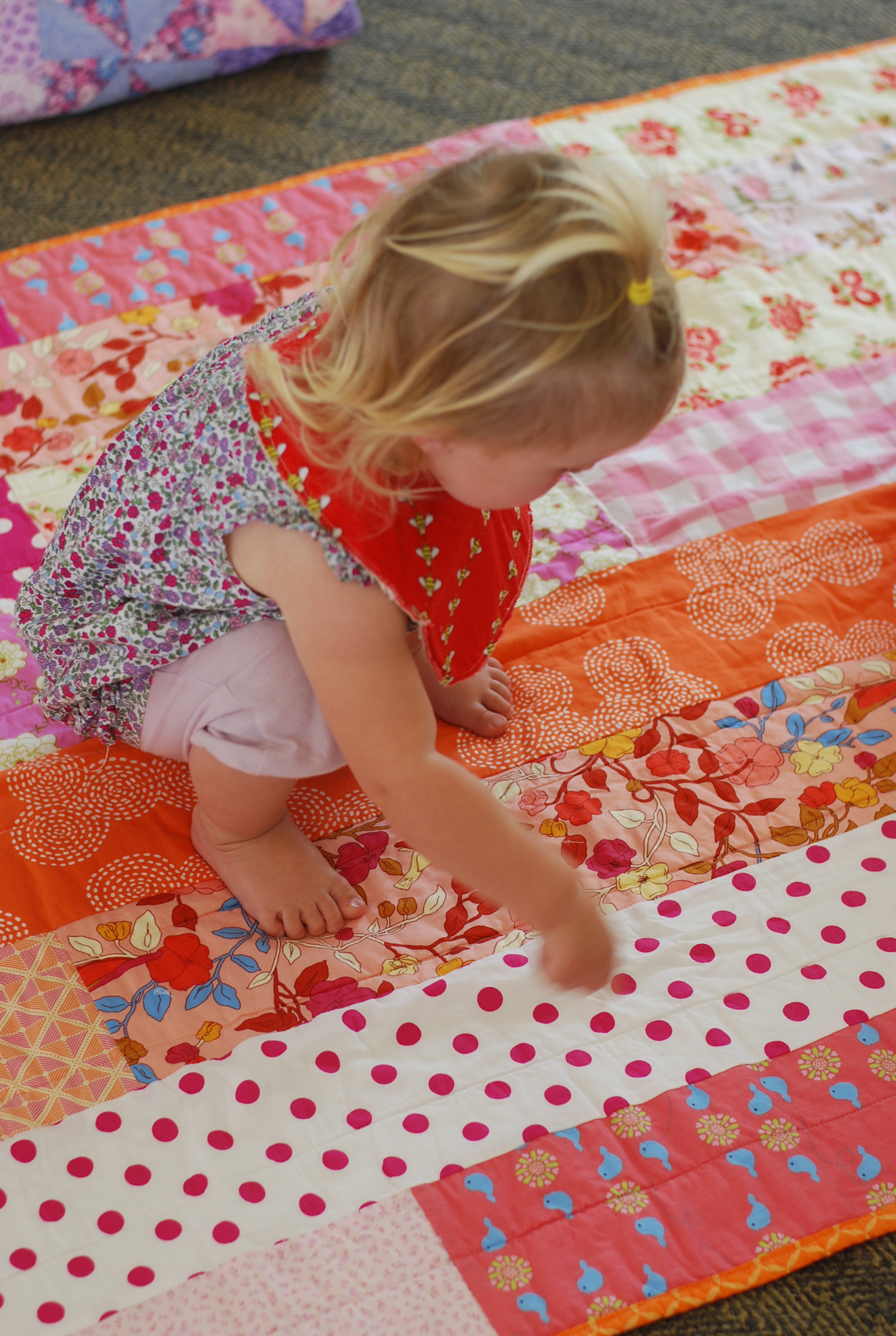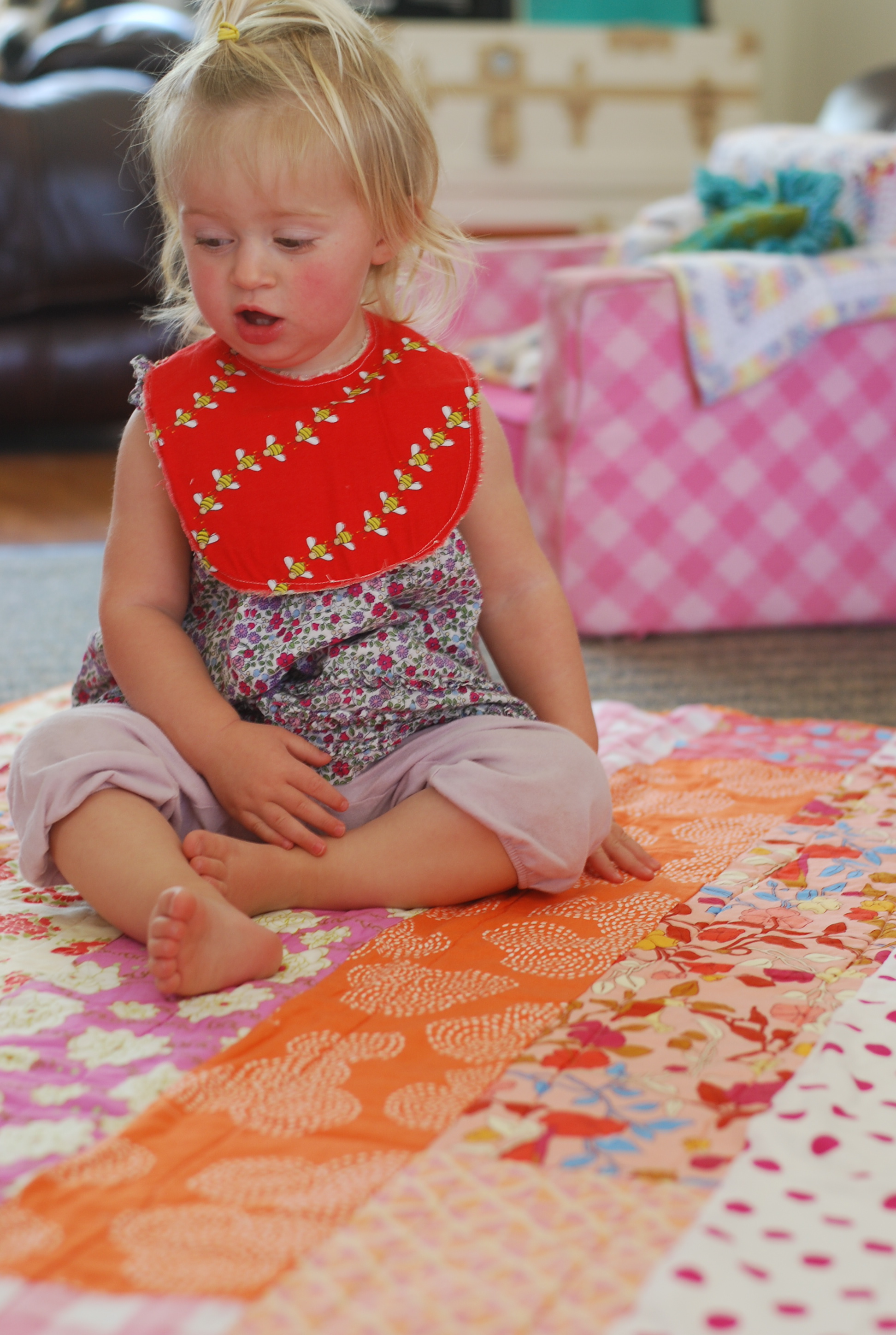 New quilts to cherish (made by this lovely lady, thank you Cory, as you can see we both LOOOVE our new quilt) plus a bumble-bee bib to brighten up the home.