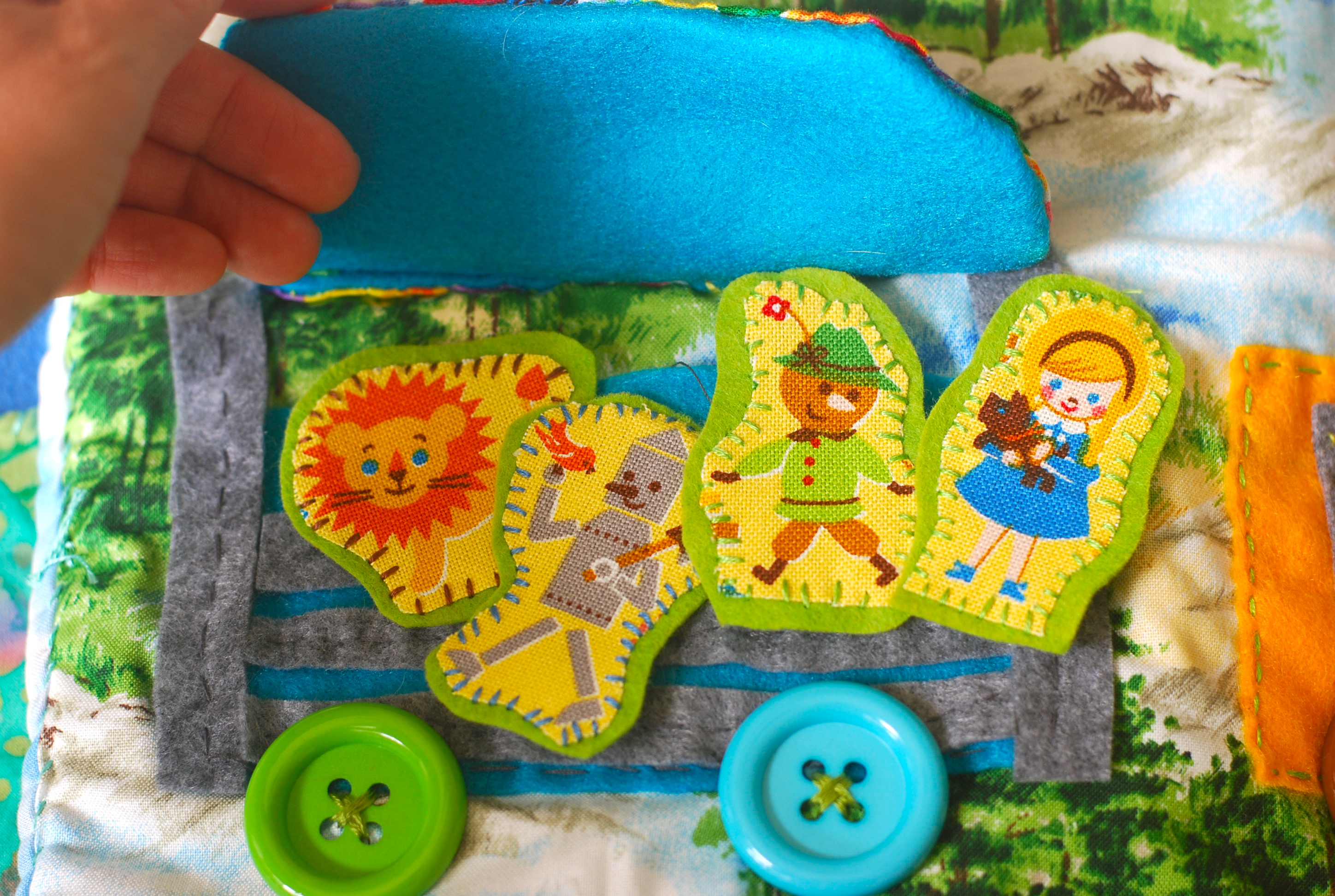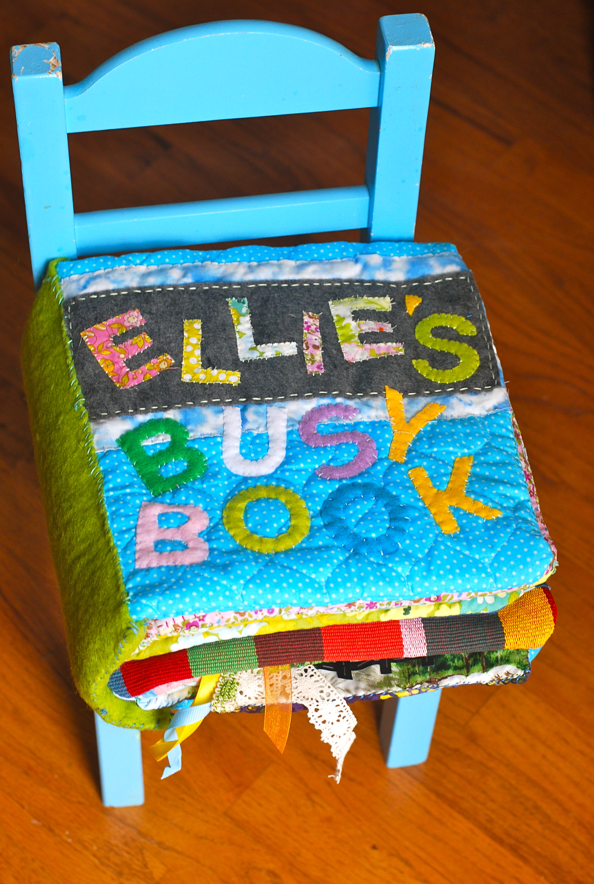 It took me almost 5 months to make. I followed no template. Everything was completely hand-sewn and free form. Here it is in all its glory… I present “Ellie’s Busy Book” ! (Can you tell I’m a little excited?!)