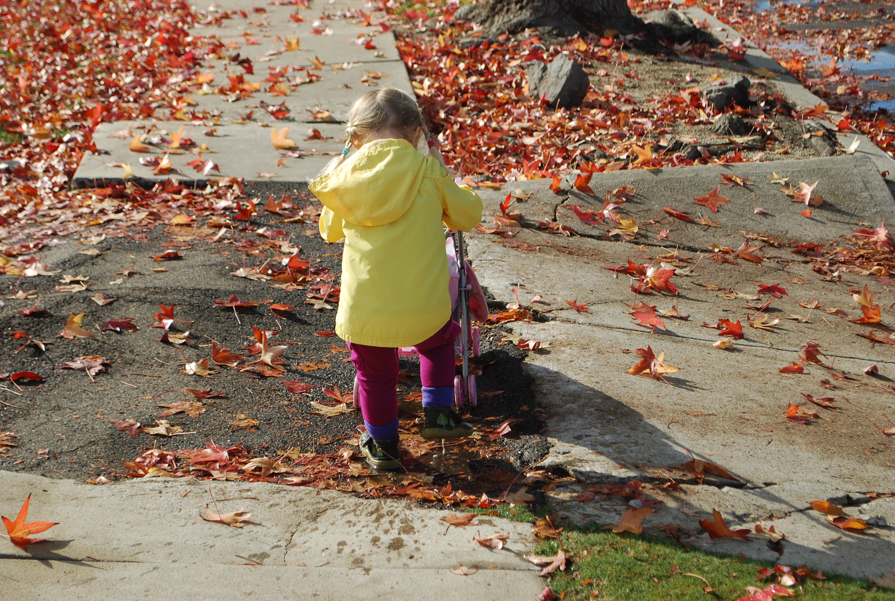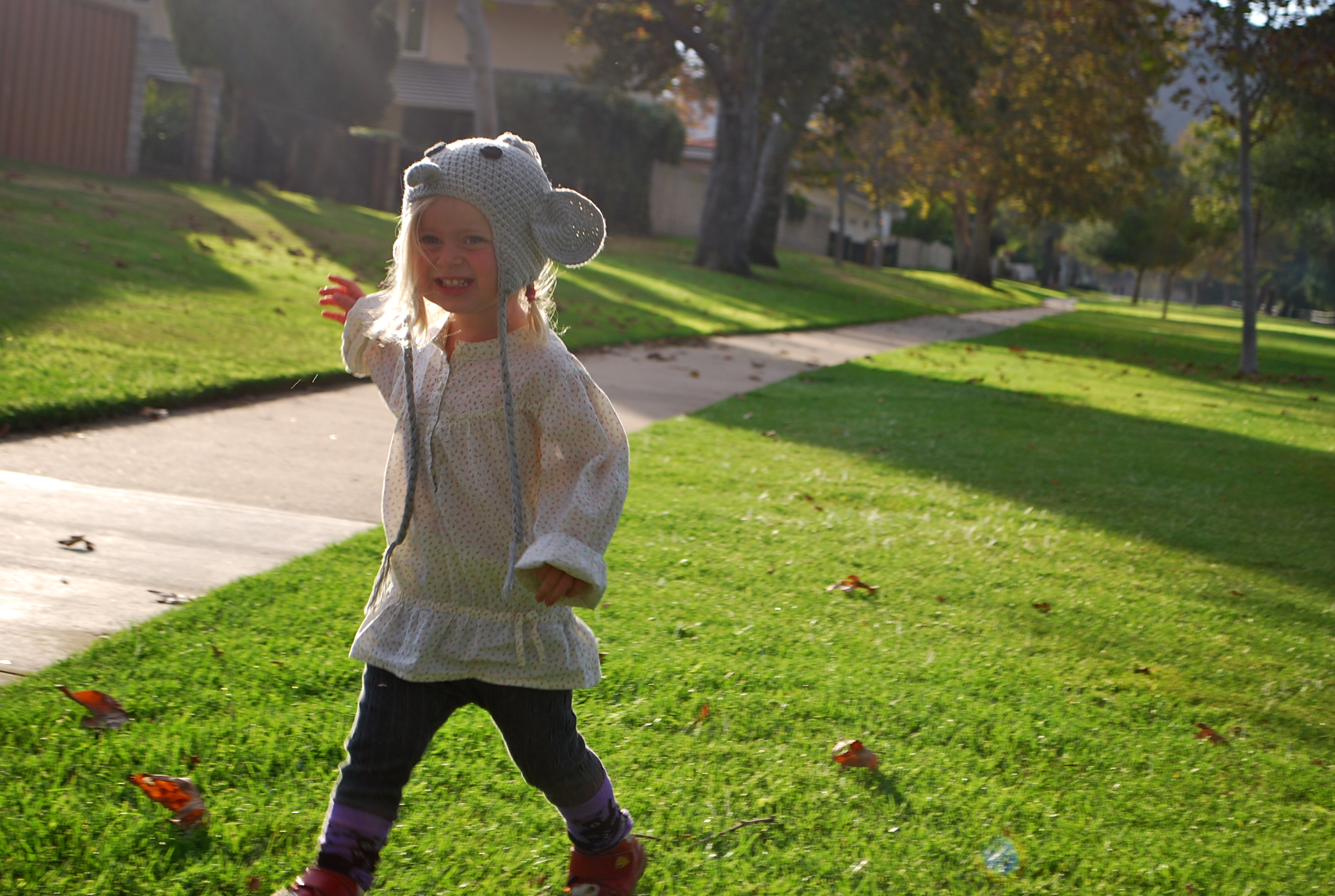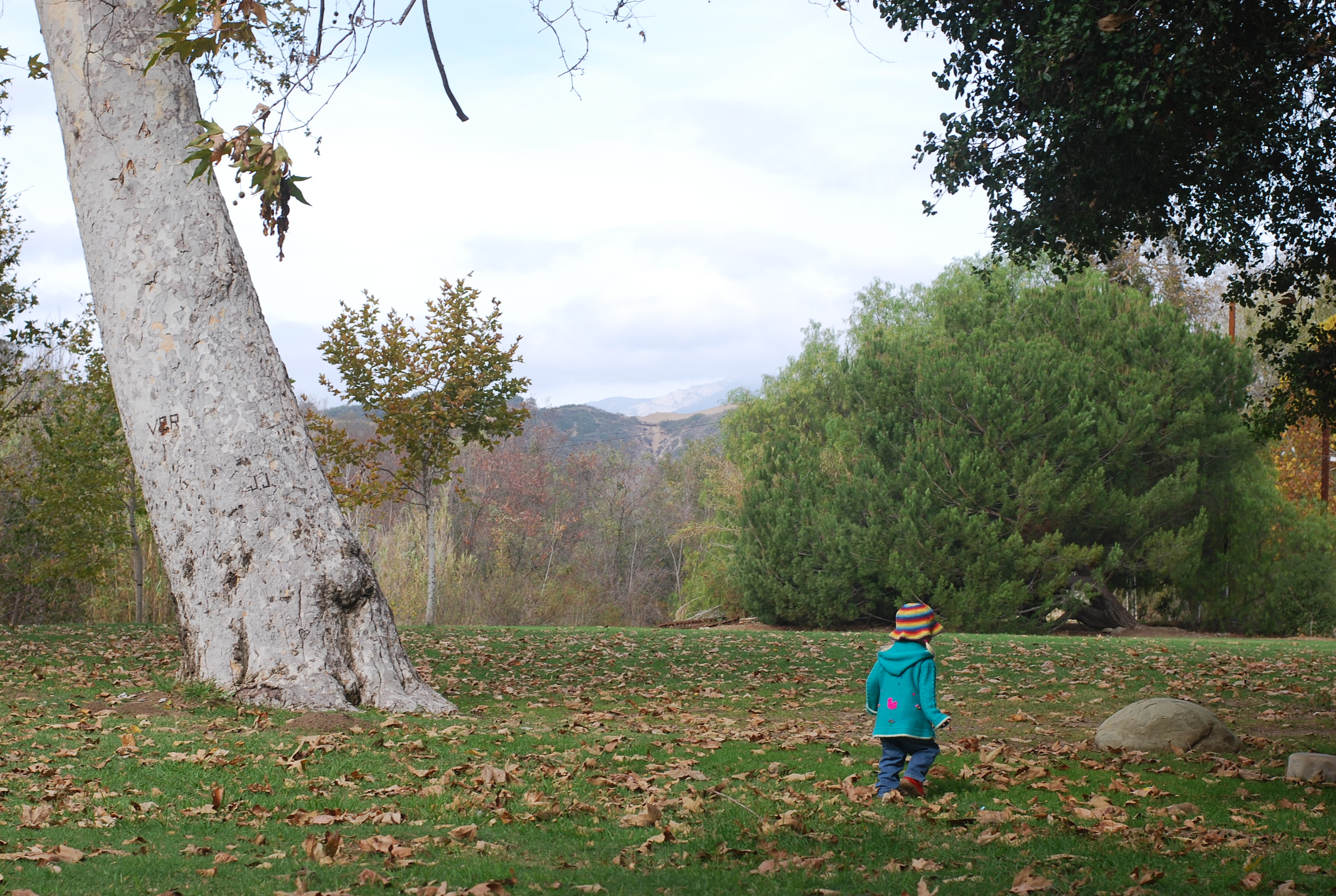 This weekend started out a bit wet. So of course we went out in search of puddles to stomp in. We collected leaves and brought them home to make a leaf collage. We read leaf books and made leaf rubbings. We’re soaking in the Autumn weather before California gets the better of it and warms up again (as is always the case). We went to a good friend’s birthday party and brought her a peg doll family. Saturday we went to my parents and took a nice long walk with my brother and his girlfriend. Ellie ran off some energy and climbed trees. We even saw a coyote skitter down the wash.