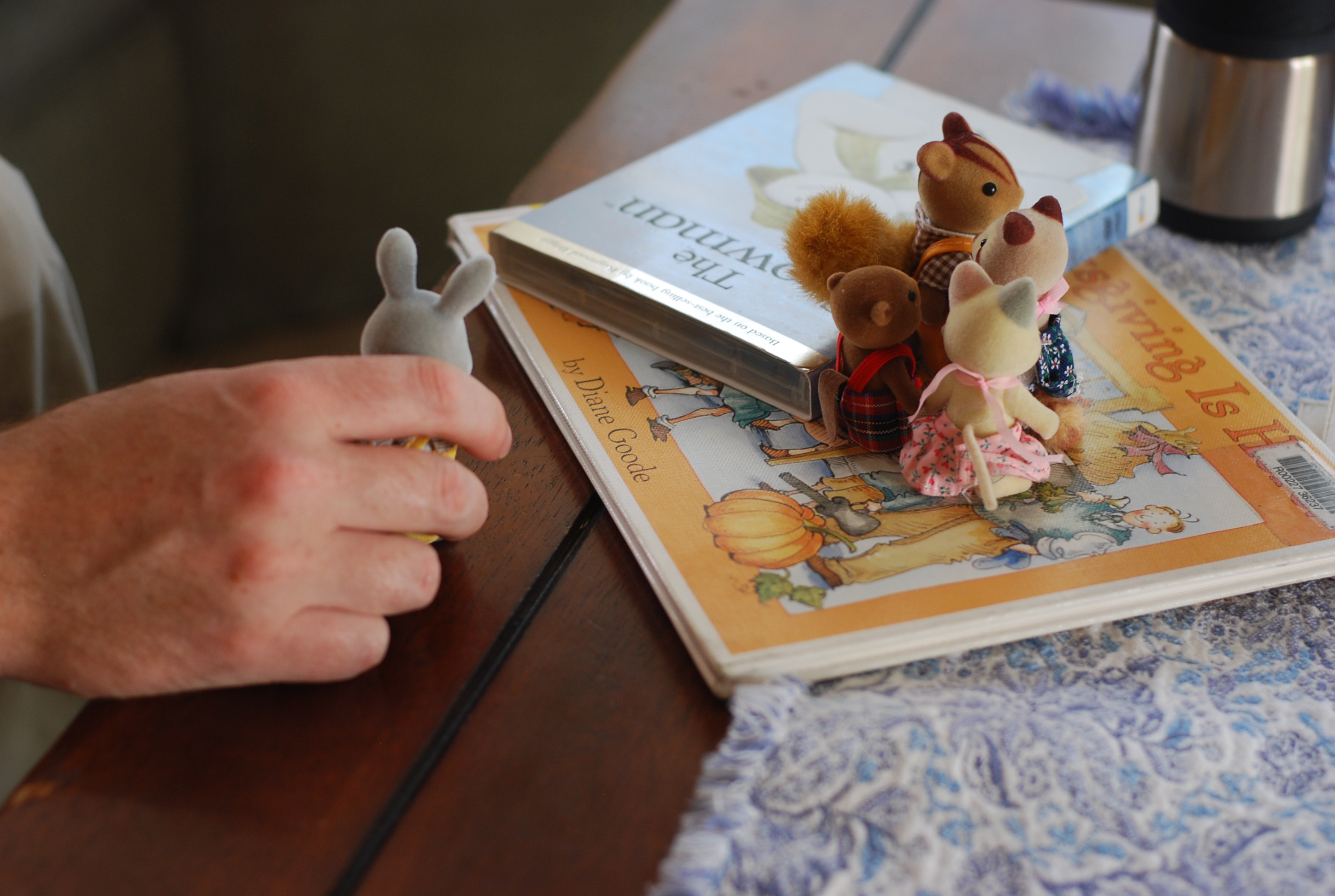 I recently finished Ellie’s “Winter playmat” and couldn’t wait till Christmas to give it to her. Months ago, I had bartered with another amazing crafter for her wooden Inuit set. I made her several playmats in exchange for these beautiful toys. I love that about the online community I am a part of, that trading for goods is something that’s done often. (Her etsy store is here, if you’d like to check out more of her beautiful toys).