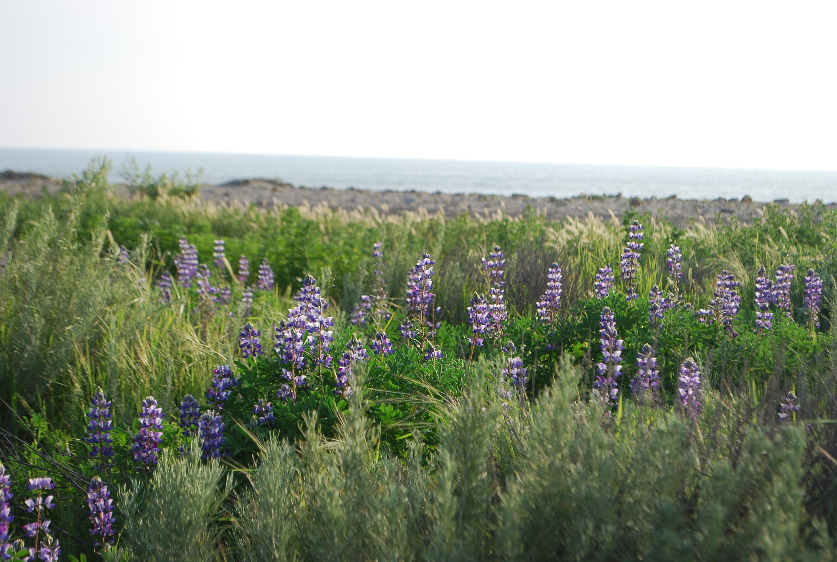 So Ellie, who’s all of a sudden just off and riding her balance bike like a pro these days, decided she wanted to bring her bike down with us to the beach.Ā We rode down (she rode, I trotted next to her) to the spot where the lupines grow. It was such a nice outing. So lovely being among these beautiful, bright, wild flowers, so close to the beach.