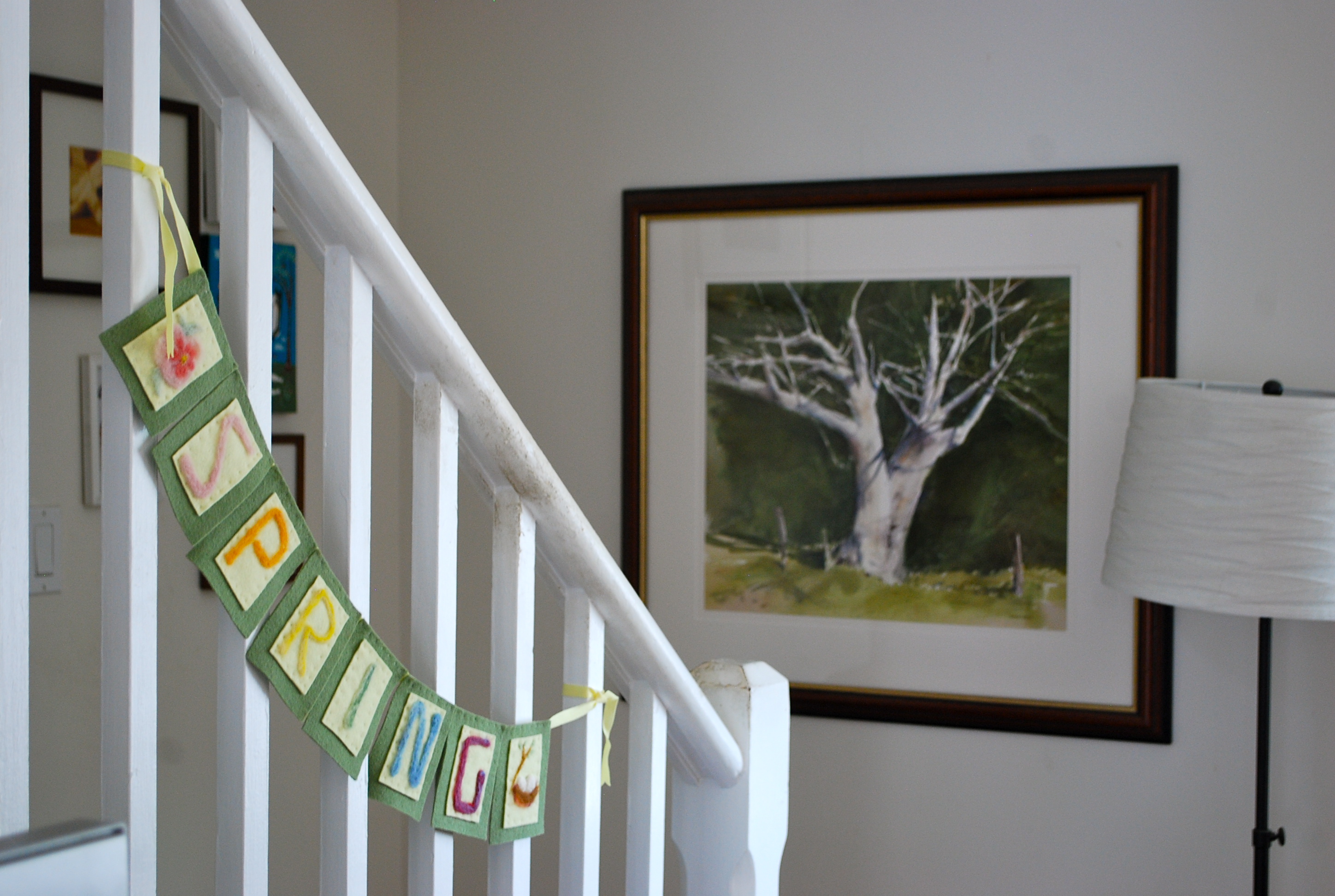 We had a really nice weekend. The weather was warm and breezy. Jeff had a slow work week, so we got chores done on Friday, which meant more time to enjoy the weekend. Saturday was a special bacon and egg breakfast, with homemade biscuits and fruit! (Those darling napkin holders are from here.) We took a little walk to the seals and then met up for an impromptu afternoon at the beach with friends. Sunday we walked downtown, rode bikes and I got in a little painting and crafting. A quick but very nice weekend. I’m looking forward to next weekend. We are hosting a little Easter/Spring brunch for my family and I’m sure it will be a fun day!