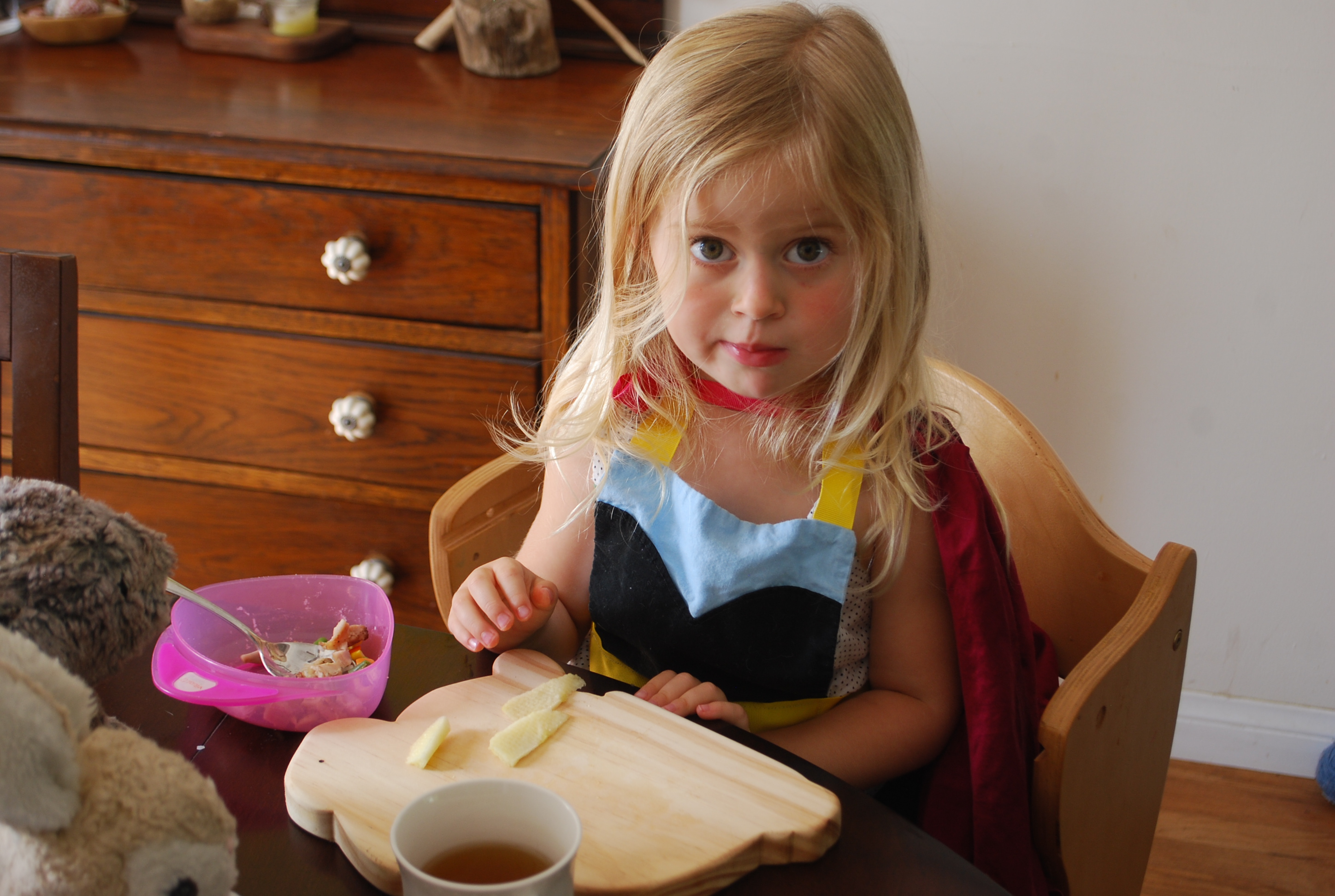 eloise: finally eating again after your first real stomach bug. Fever following by Lots of throwing up and diarrhea. The whole nine yards. It was a miserable two weeks. Thankfully you are feeling much better. Hanging with softie friends, drinking chamomile tea and snacking on apples and leftovers in complete Ana costume. You are back!