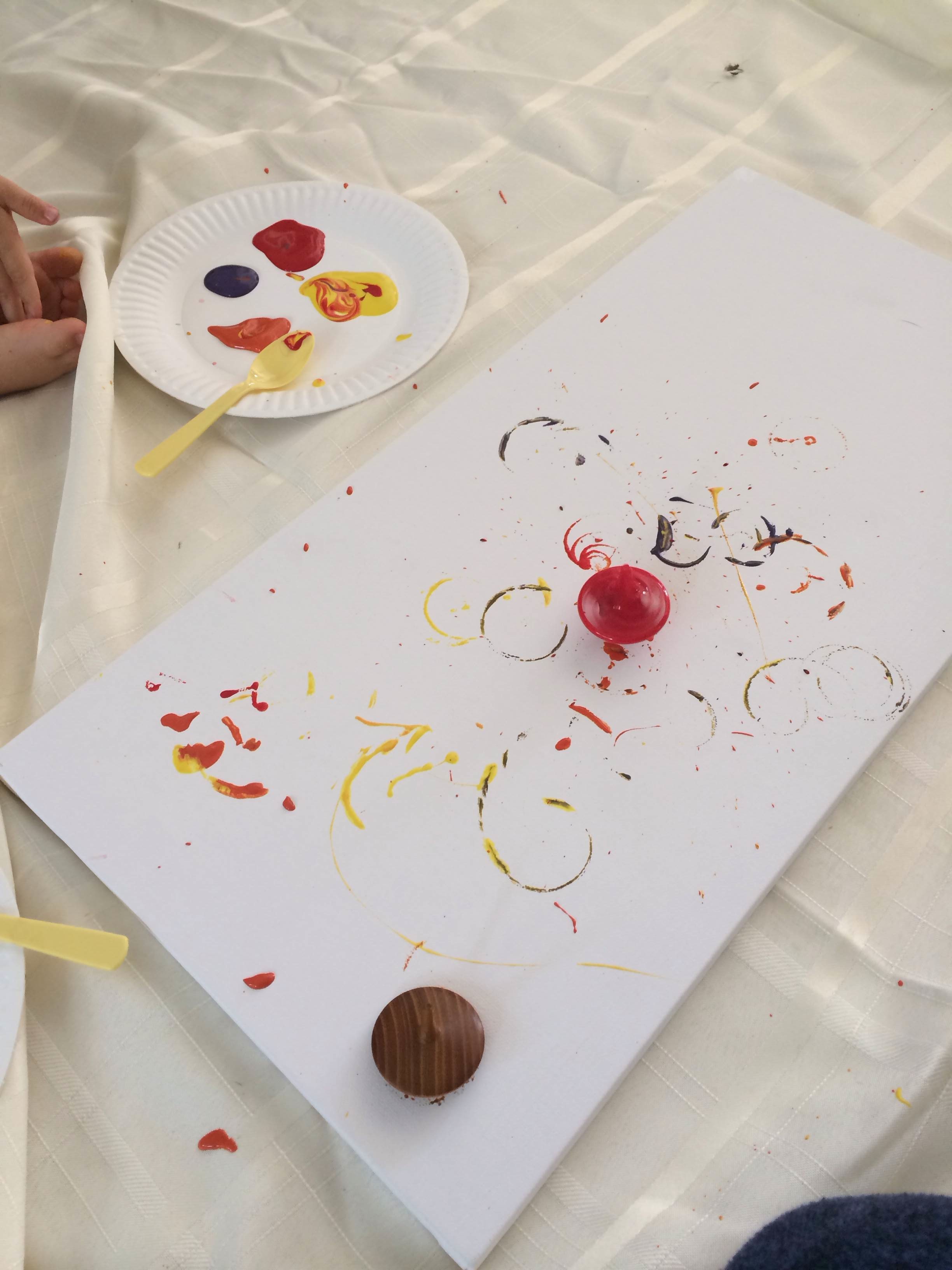 And a spinning top with paint activity as well as dropping paint from a ladder ( we used her high chair).