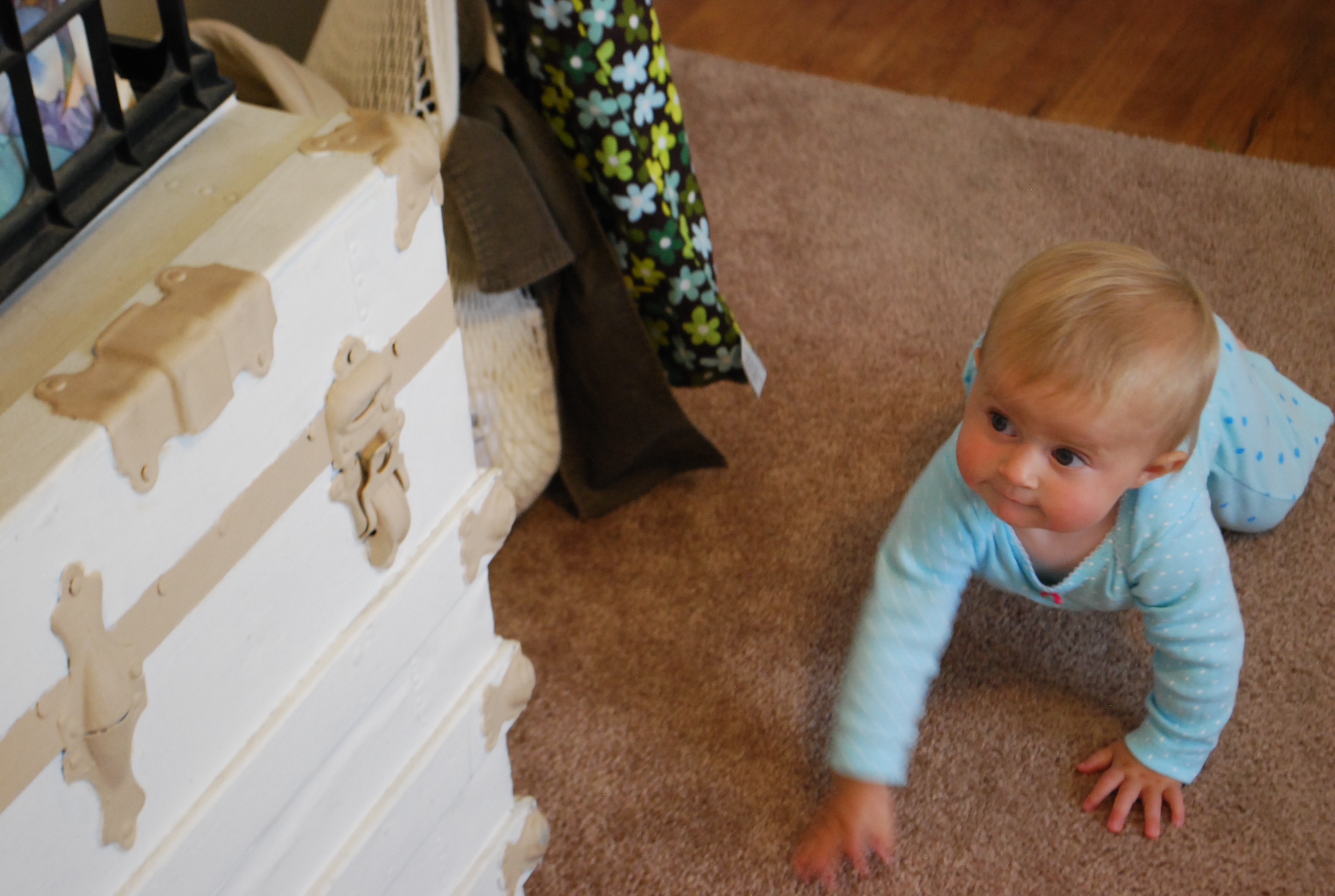 As you can see, Ellie is very excited about her new room. We have been spending some time in here every day, exploring, crawling around, playing and napping. It’s a nice space for this growing girl, a space that will grow and change with her development and needs. Right now it’s simple, sweet and perfect for this nine month old. A space she can truly call her own.