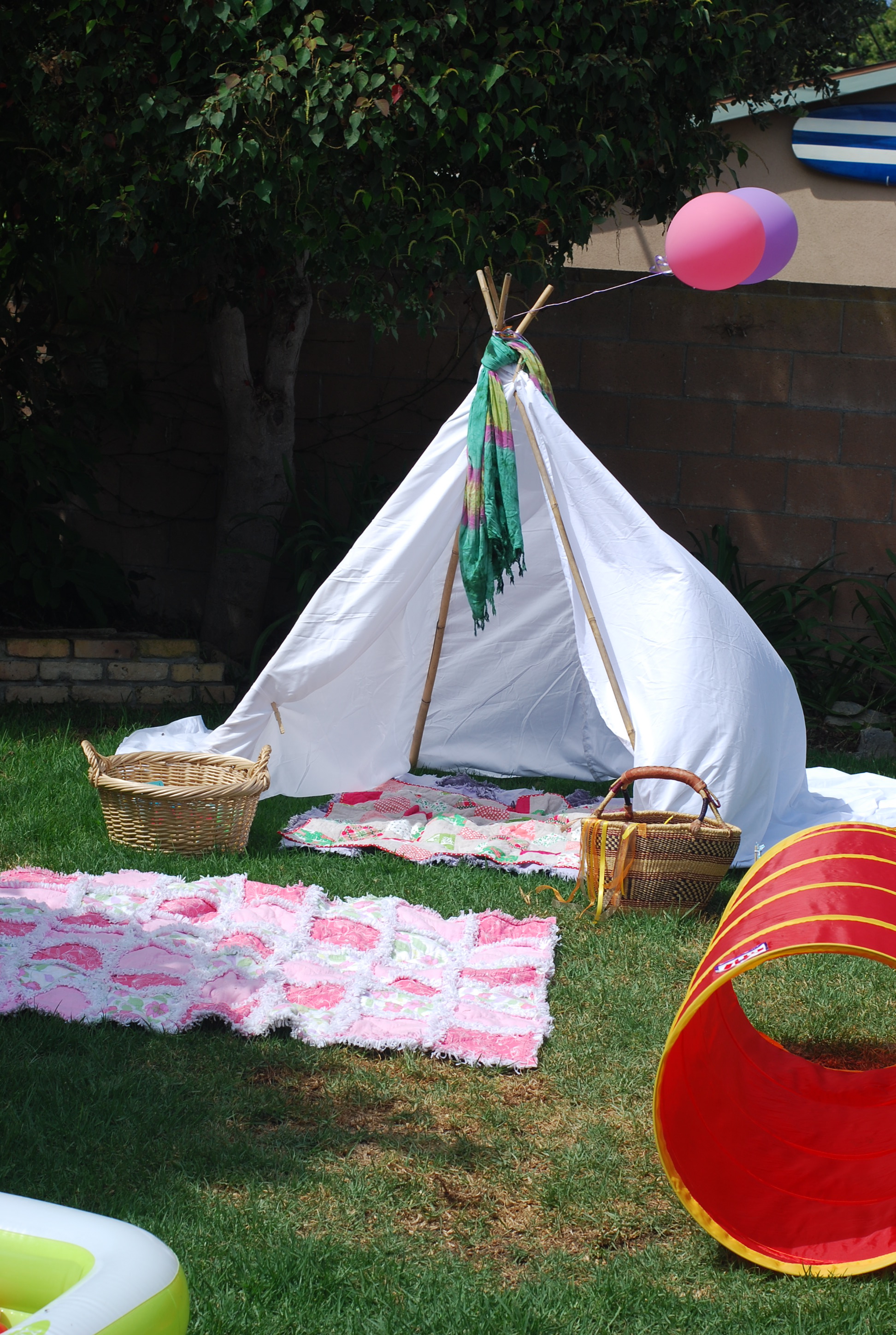 With one of last years tee pee’s making an encore appearance, we had books and balls and musical instruments and tunnels and two sensory bins to keep the kiddos busy.