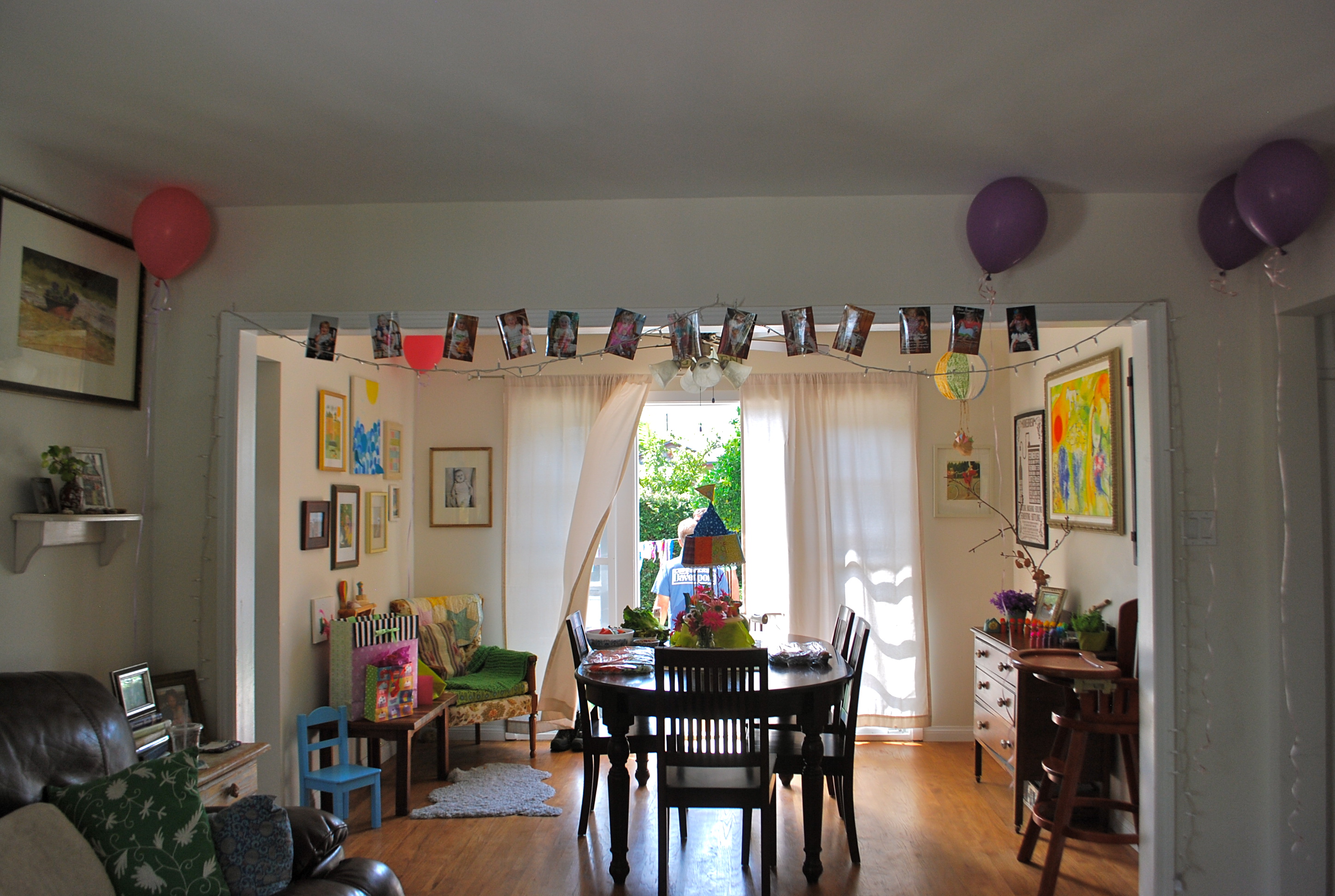 A shot of our little house decked out for the party. I printed out Ellie’s Monthly Photos from 12 months to 24 months and hung them banner style in the main room.