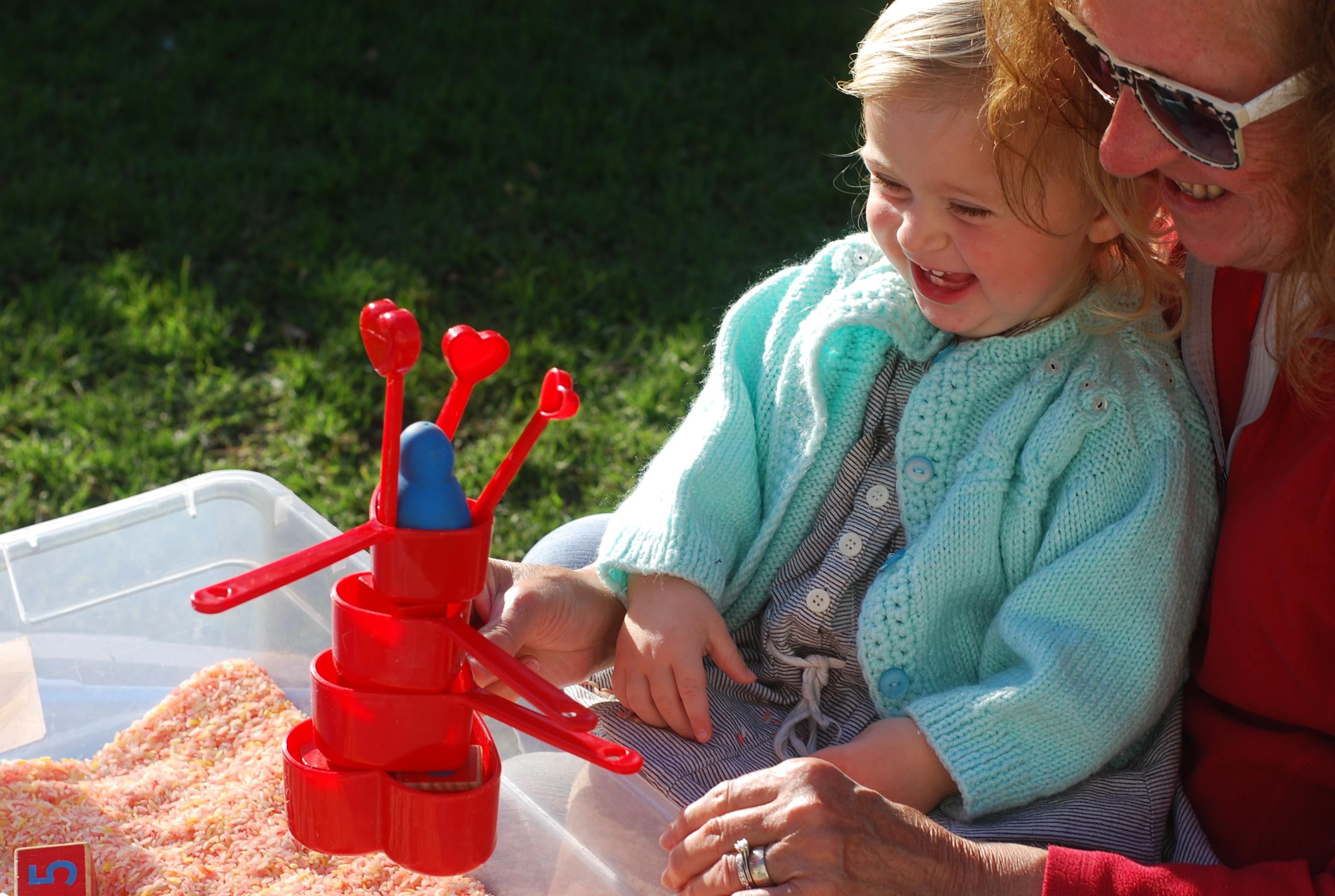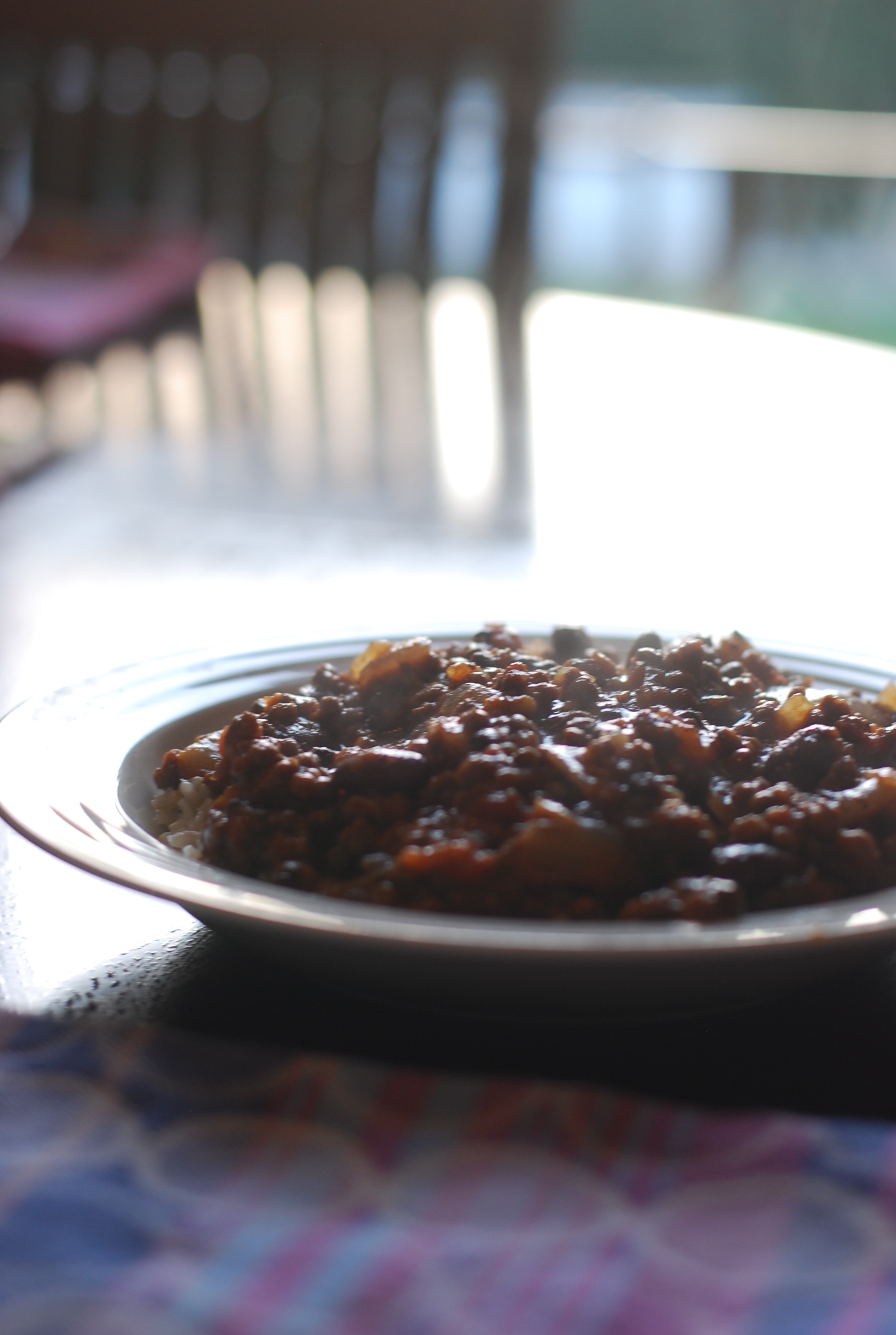 Sunday the weather was beautiful. The day started off rough when we attempted to eat out for breakfast and an 18 month old little person had other plans. But after a well needed nap, we enjoyed a beautiful day with the in-laws again, playing outside in the sensory tubs, taking a little bike ride (Ellie rode in the trailer we borrowed from a friend), dancing to some family banjo and guitar practice, folding linens and finishing the evening off with delicious homemade lentil chili.