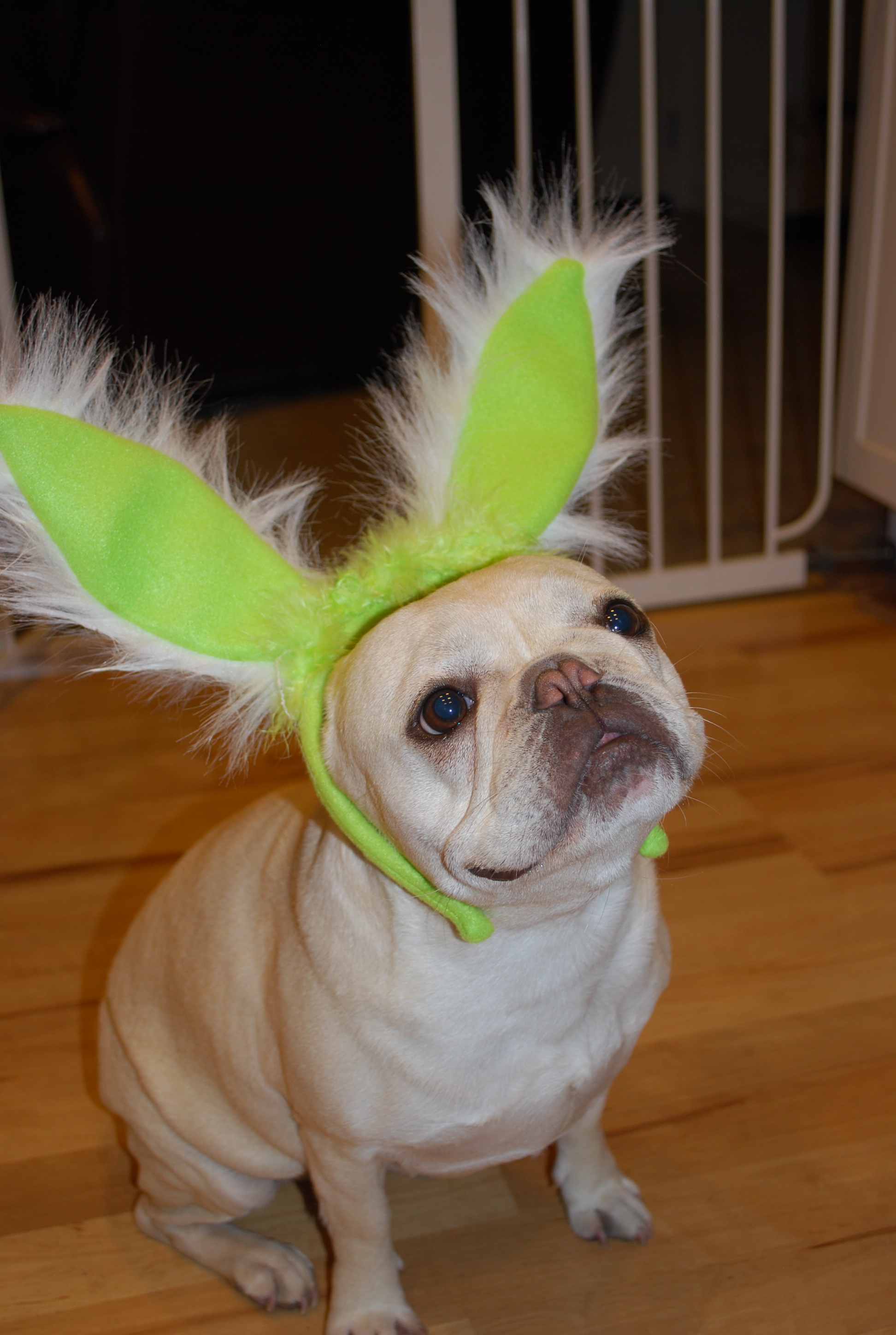 And last but not least, Easter doggie who hates us now after being tortured with silly bunny ears.