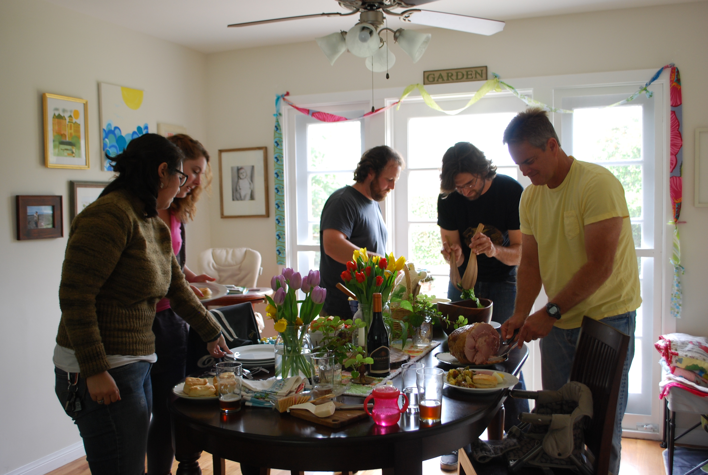 As you can see from all the photos, we had a very busy but very fun weekend! Friday we said goodbye to Jeff’s parents as they headed back across the country to Boston. Saturday we spent the day in Los Angeles at a very special first birthday party. Ellie got to meet her two Great Uncles, cousins she had never met and a slew of other family. It was a really lovely day! (That kitty was the handmade softie I made for the birthday girl). Sunday was Ellie’s first Easter and we had Easter dinner at our house. First we made a pit stop at the Antique market before we got a rained out and headed back home to prepare for Easter dinner. Then we enjoyed good food, family, friends, and lots of tulips and candy. It was such an exciting day, Ellie ended up falling asleep right after dinner and then waking up just in time for bedtime. It was a long, busy, lovely Easter weekend. How was yours?