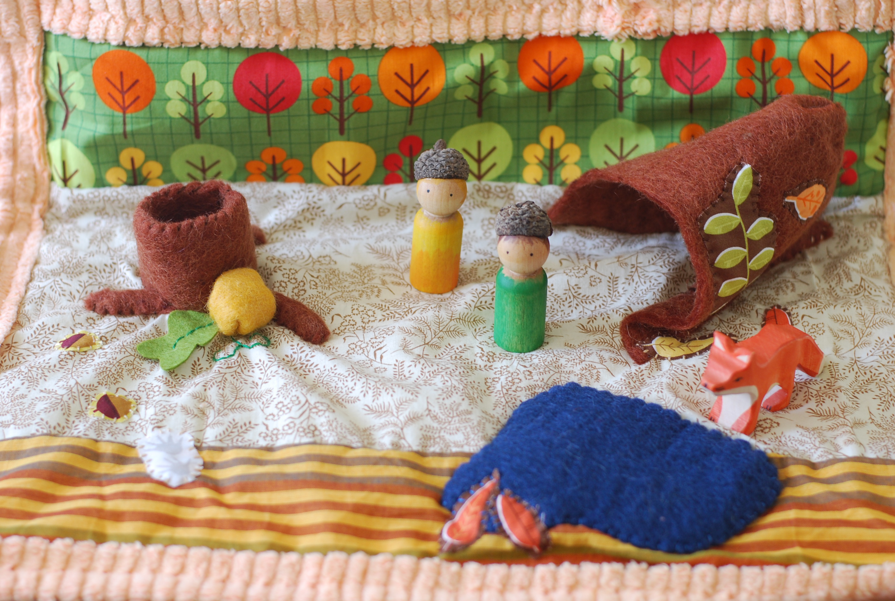 I also did a little mini swap with a local Mama friend of mine. Ellie is very much into the Boo Hoo Bird and Grumpy Bird books lately. My Mama friend made a set of Grumpy Bird felt characters for her son that turned out so adorable and amazing. I knew I wouldn’t be able to replicate what she did. So we bartered for goods. She made Ellie some incredible felt characters and I made her son a family of peg dolls.